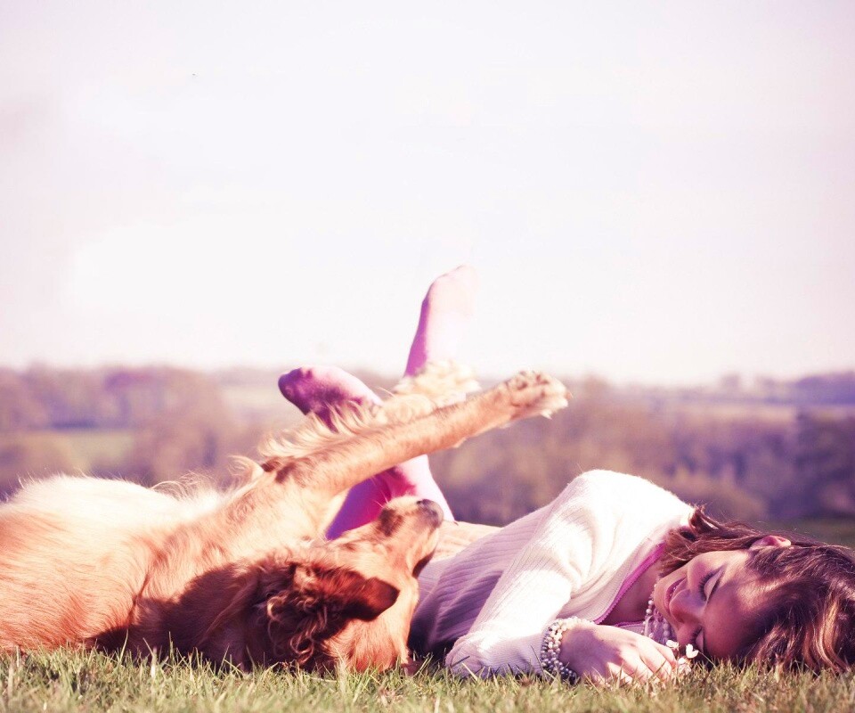 «Девушка и собака валяются на траве»