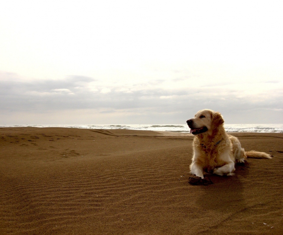 «Красивая собака на оранжевом песке»