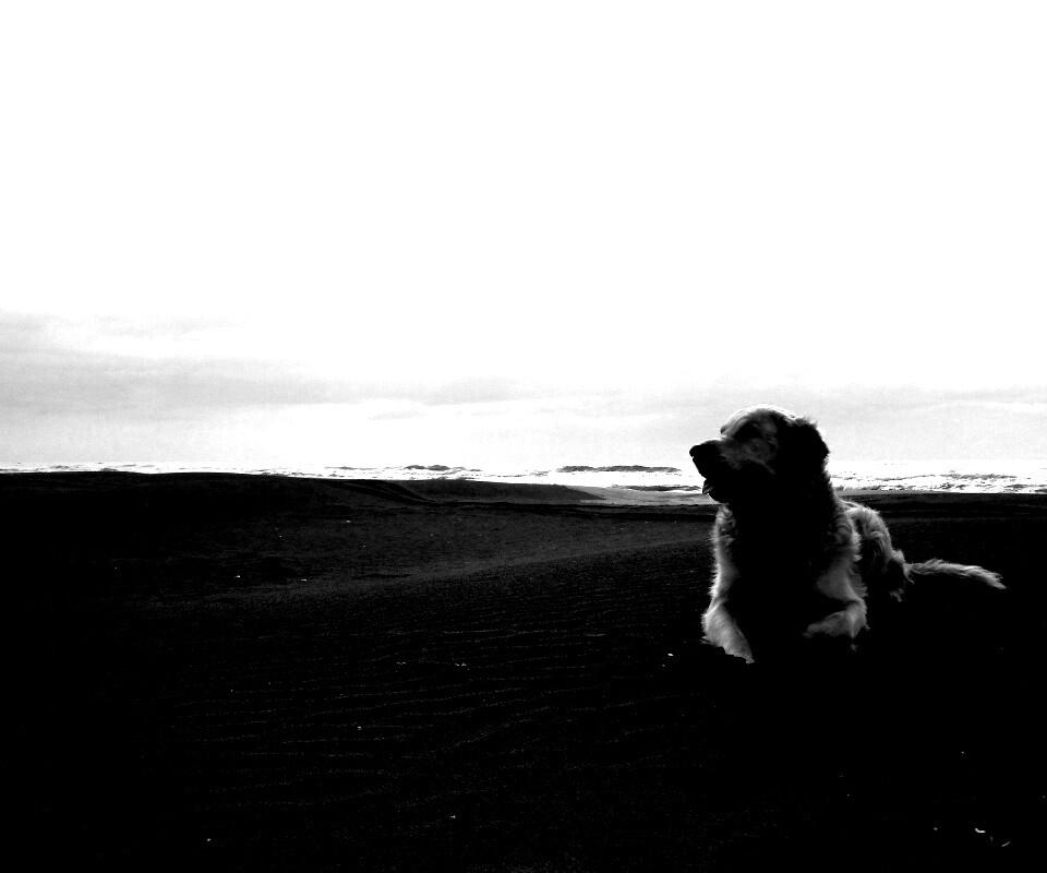 «Красивая собака на оранжевом песке»