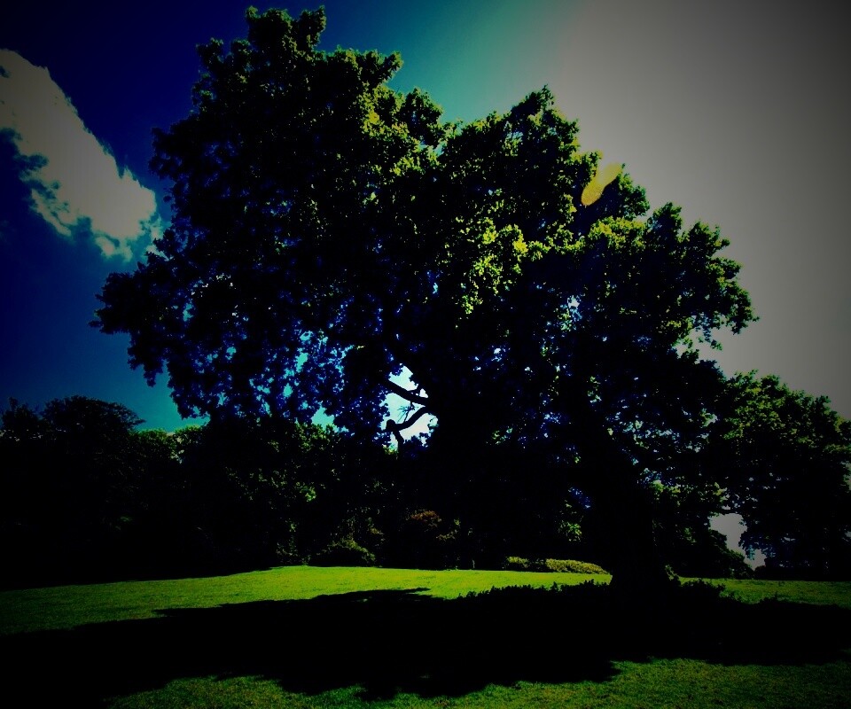«Большое зеленое дерево на лужайке»