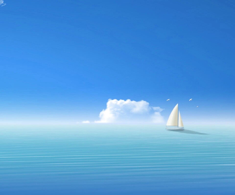 «Голубые обои под хорошее настроение с парусником»
