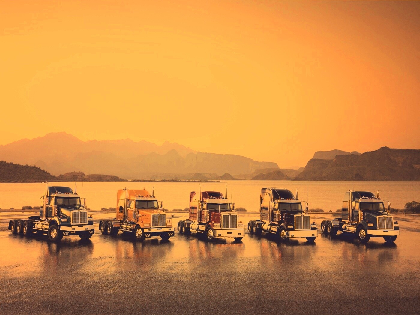 «Тягачи на фоне озера»