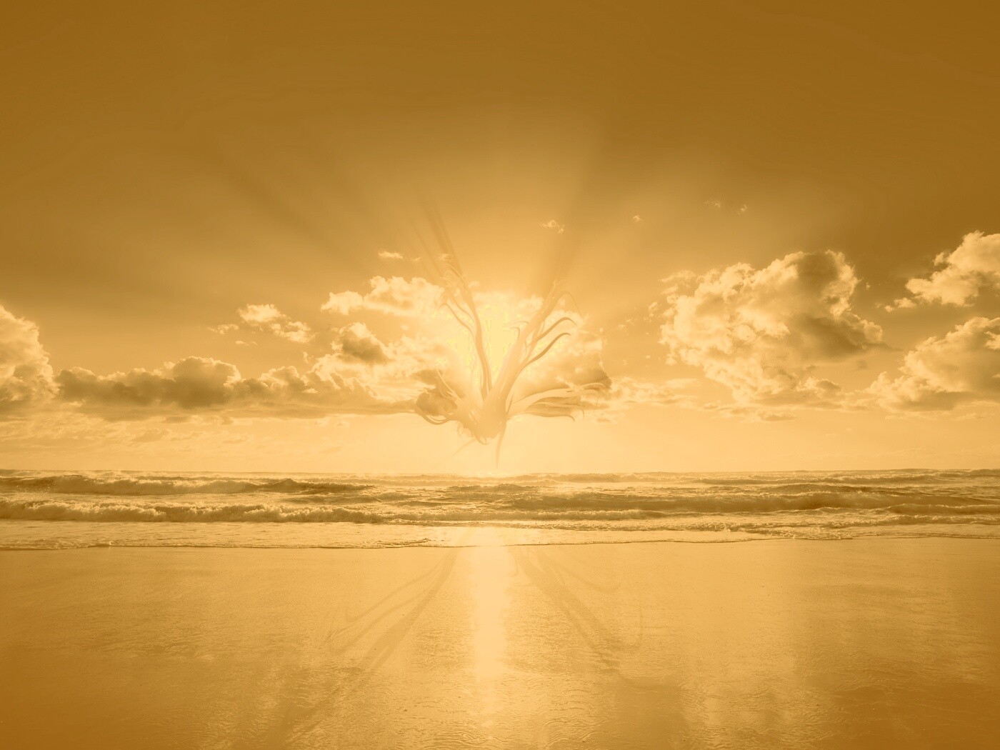 «Абстрактные перья на фоне заката»