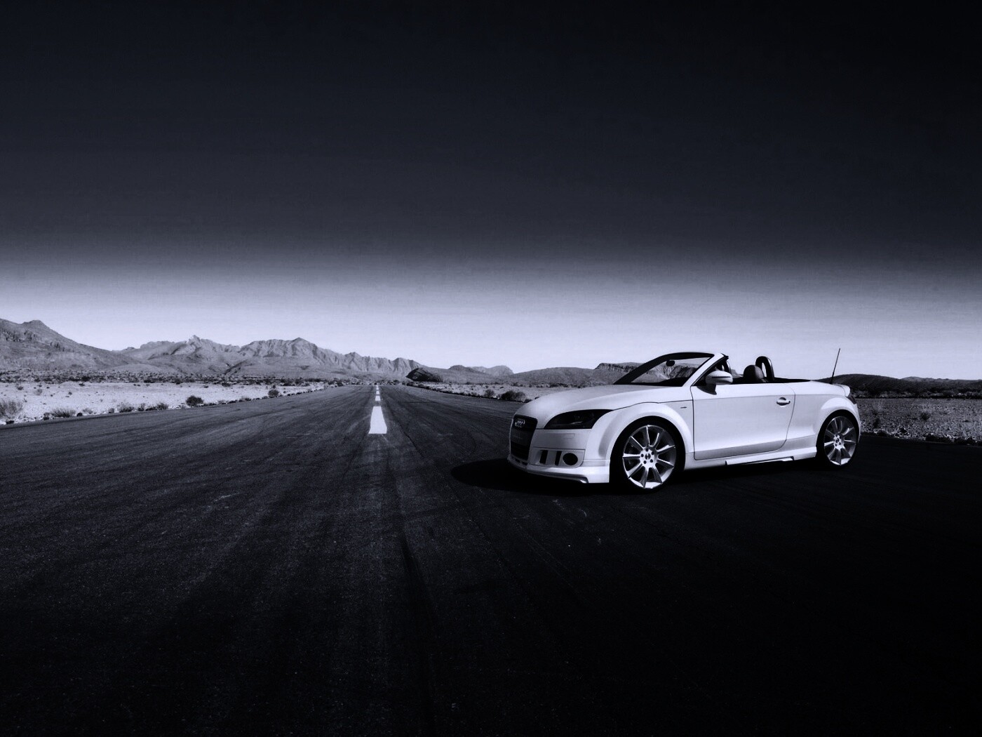 «Кабриолет Ауди на пустынной дорге»