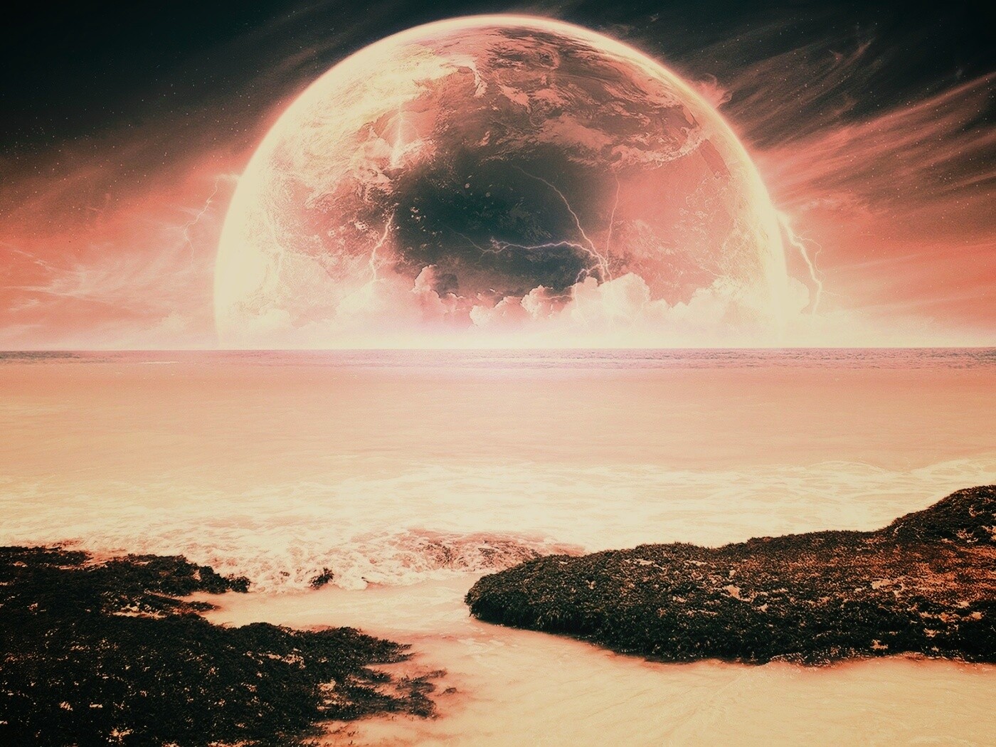 «Огромная луна над океаном»
