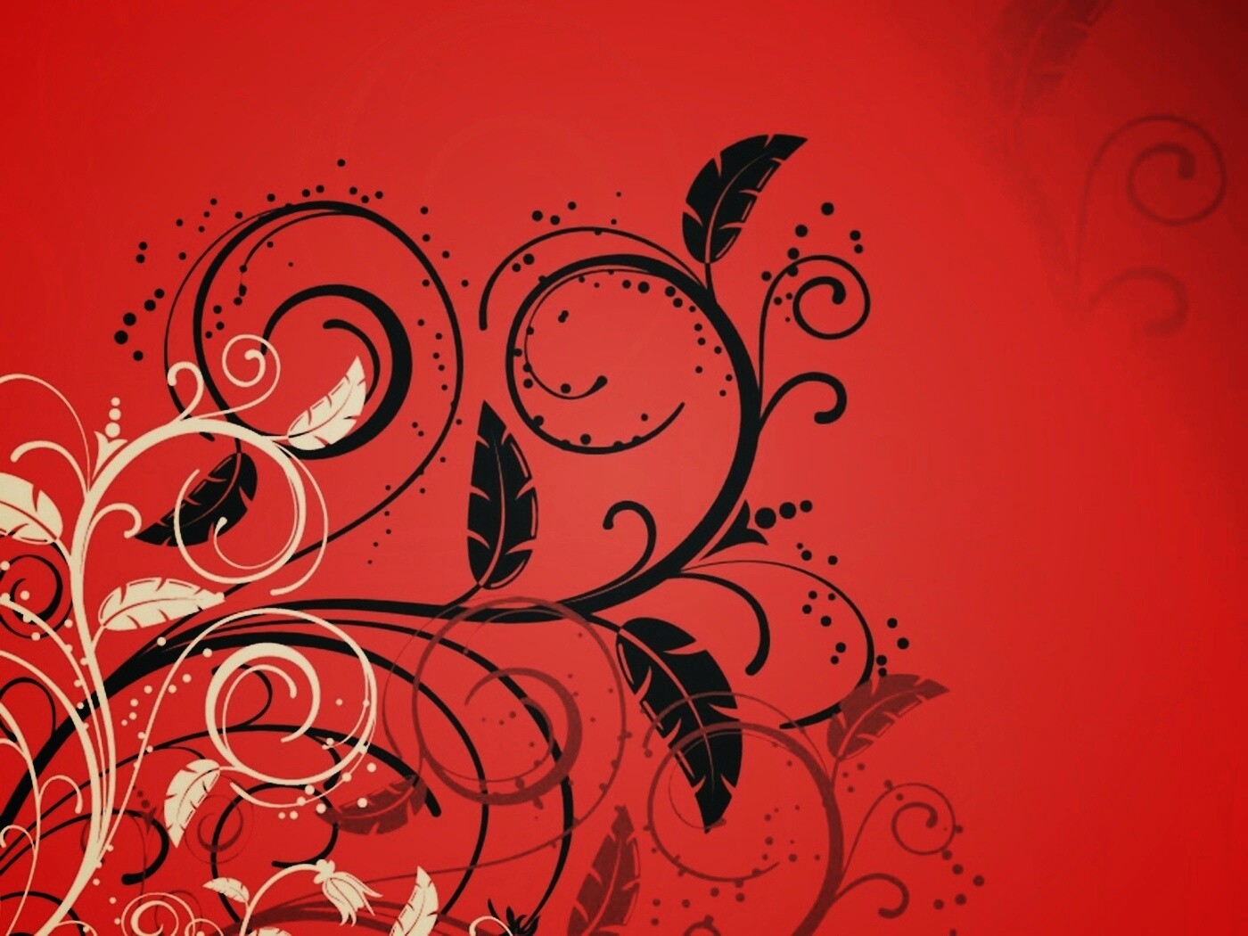 «Черно-белые листики на красном фоне»