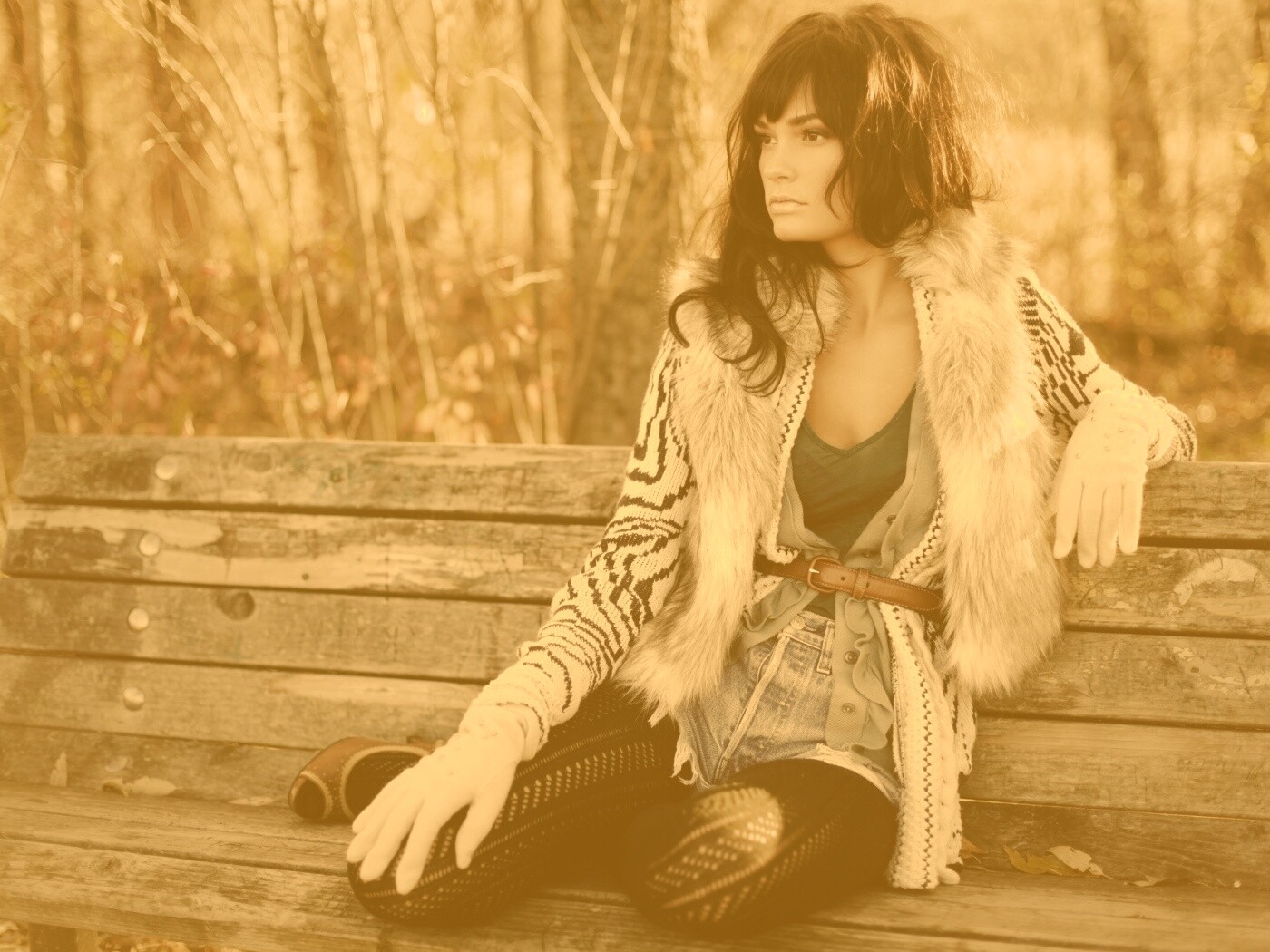 «Красивая девушка сидит на скамейке»