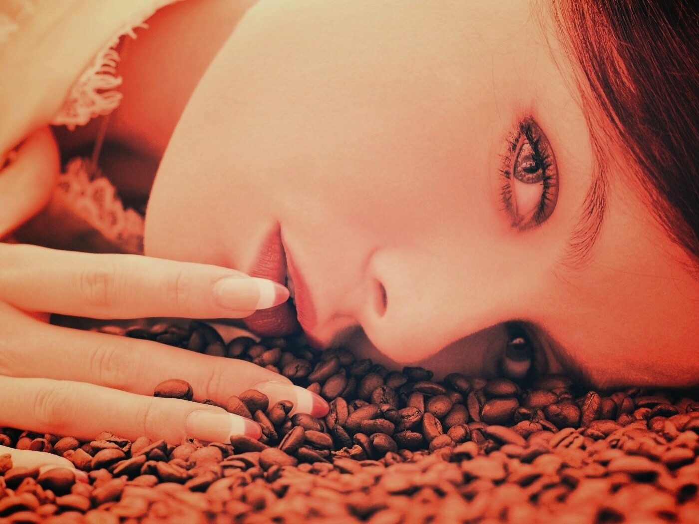 «Соблазнительная девушка с кофейными зернами»
