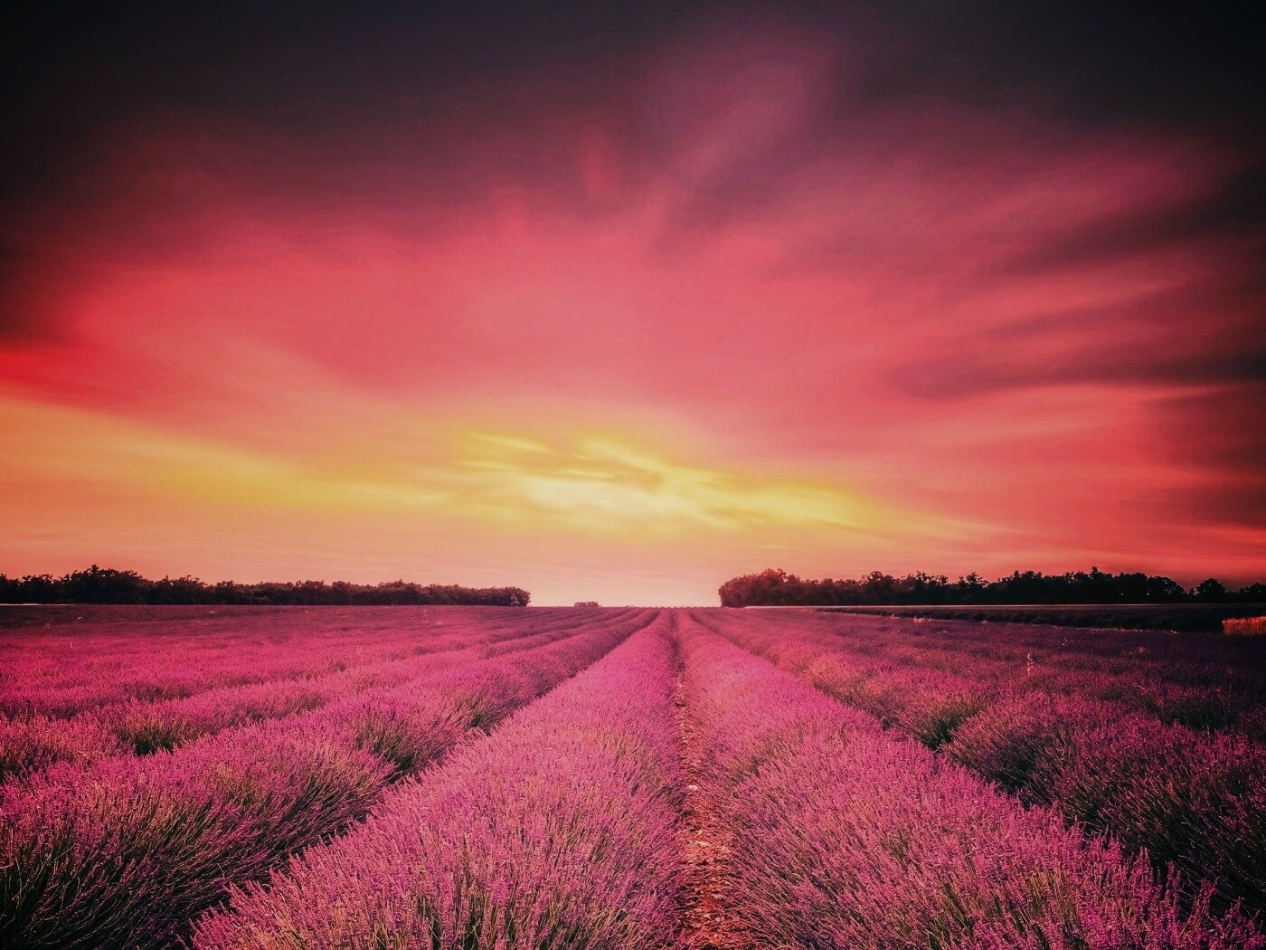 «Поле фиолетовых цветов на закате»