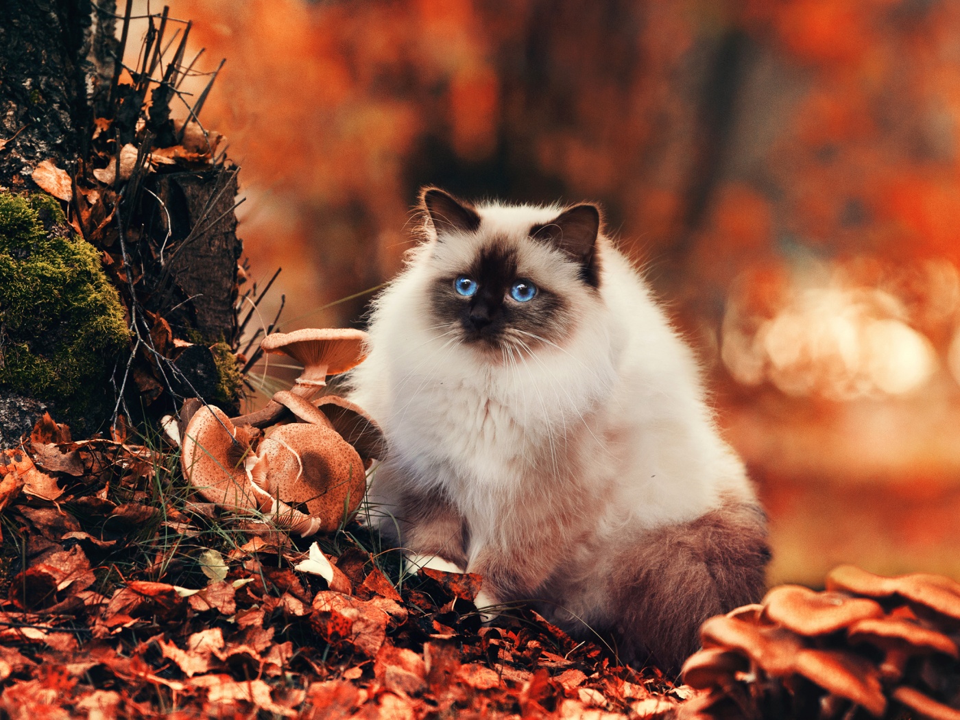 «Пушистый кот среди пожелтевшей листвы»