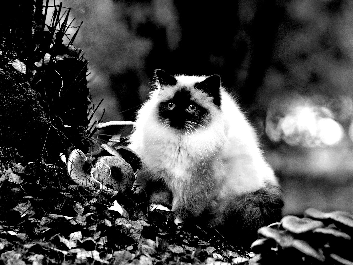 «Пушистый кот среди пожелтевшей листвы»