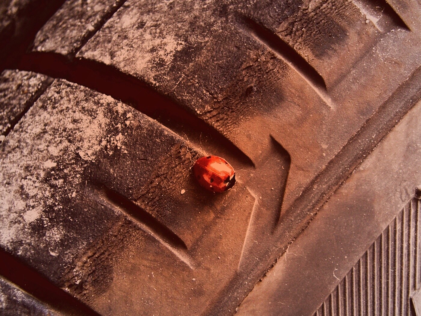 «Божья коровка на автомобильной покрышке»