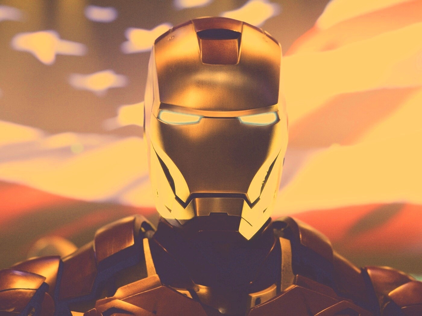 «Железный человек на фоне американского флага»