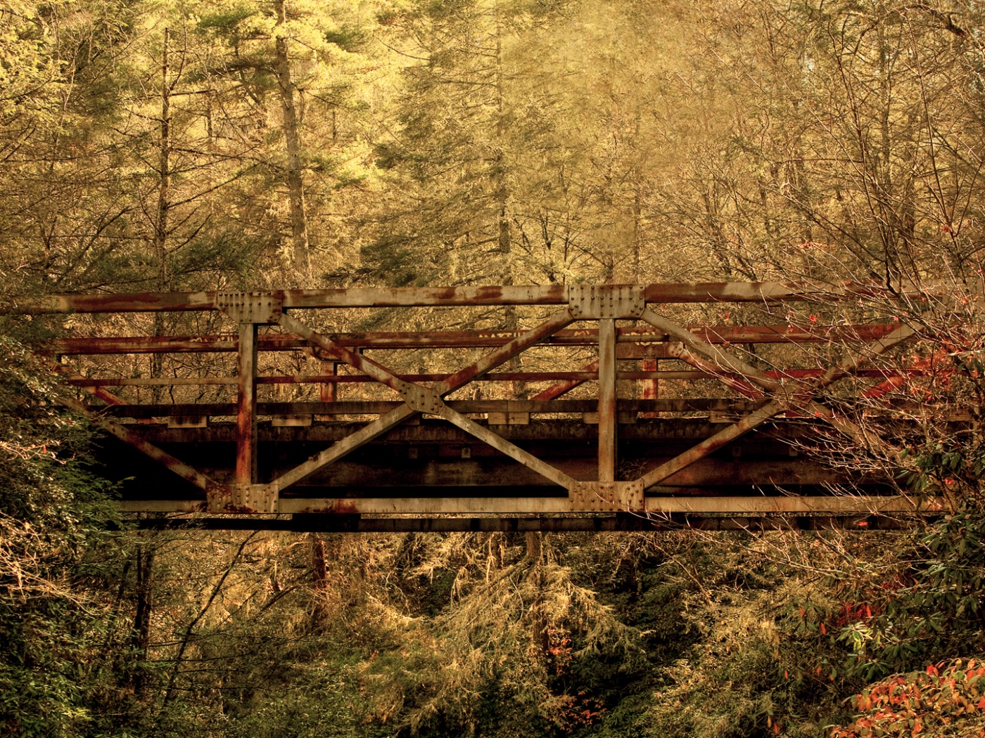«Металлический мост в лесной глуши»