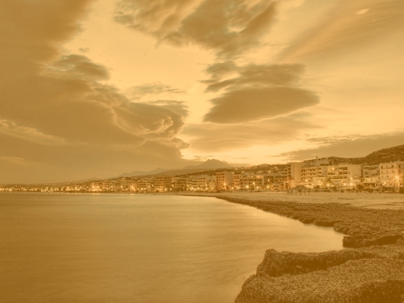 «Красивый закат над городом у моря»