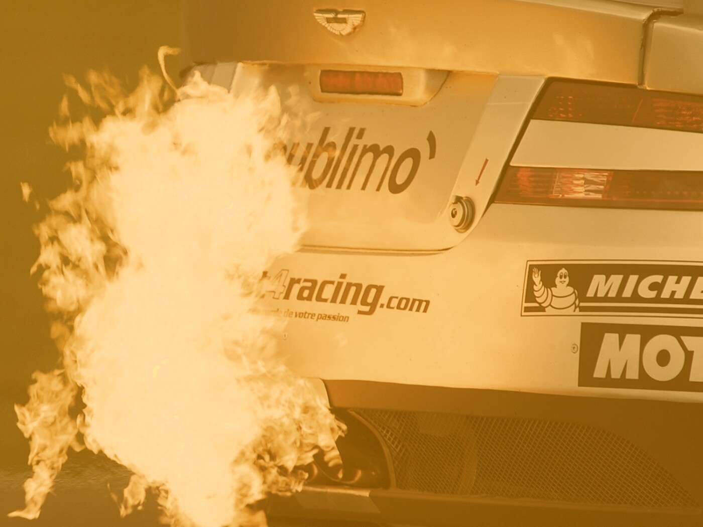 «Огонь из выхлопной трубы гоночного Aston Martin»
