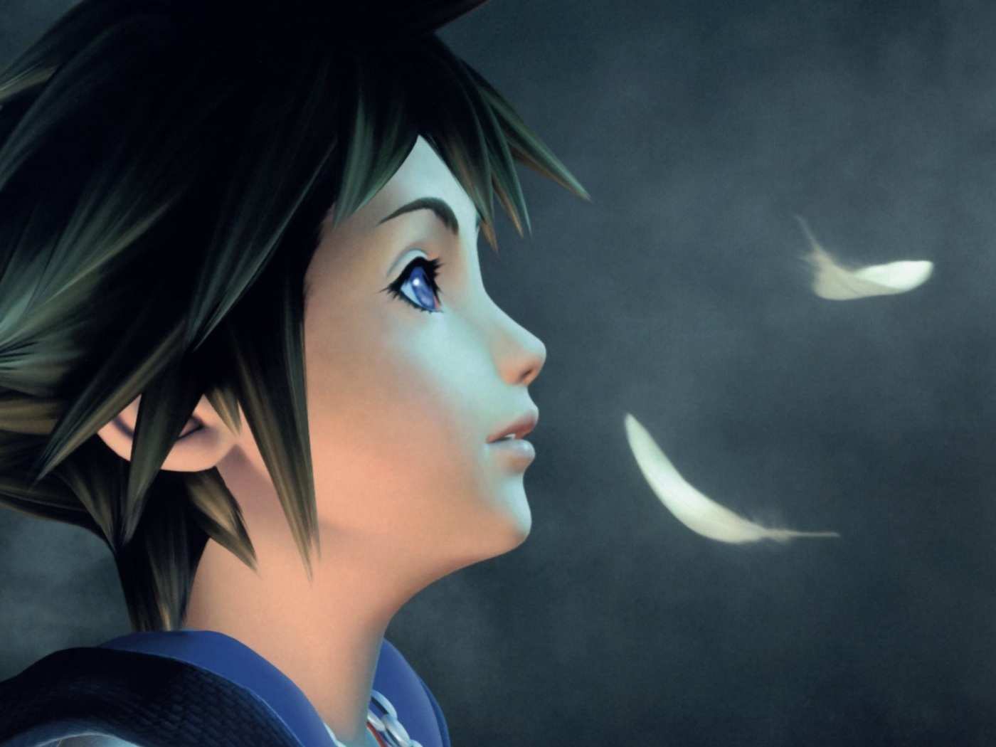 «Анимешный парень и белые перья»
