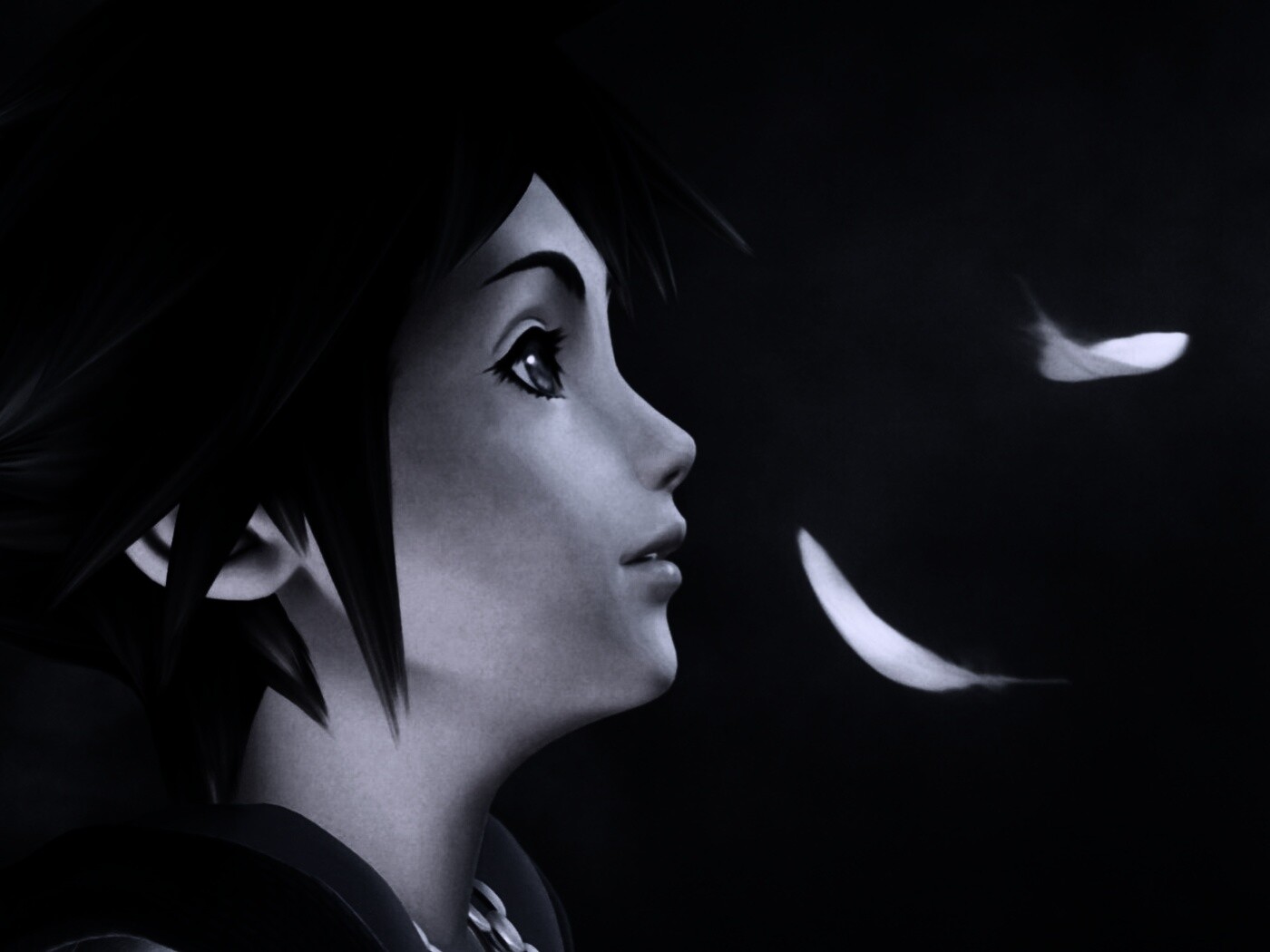 «Анимешный парень и белые перья»