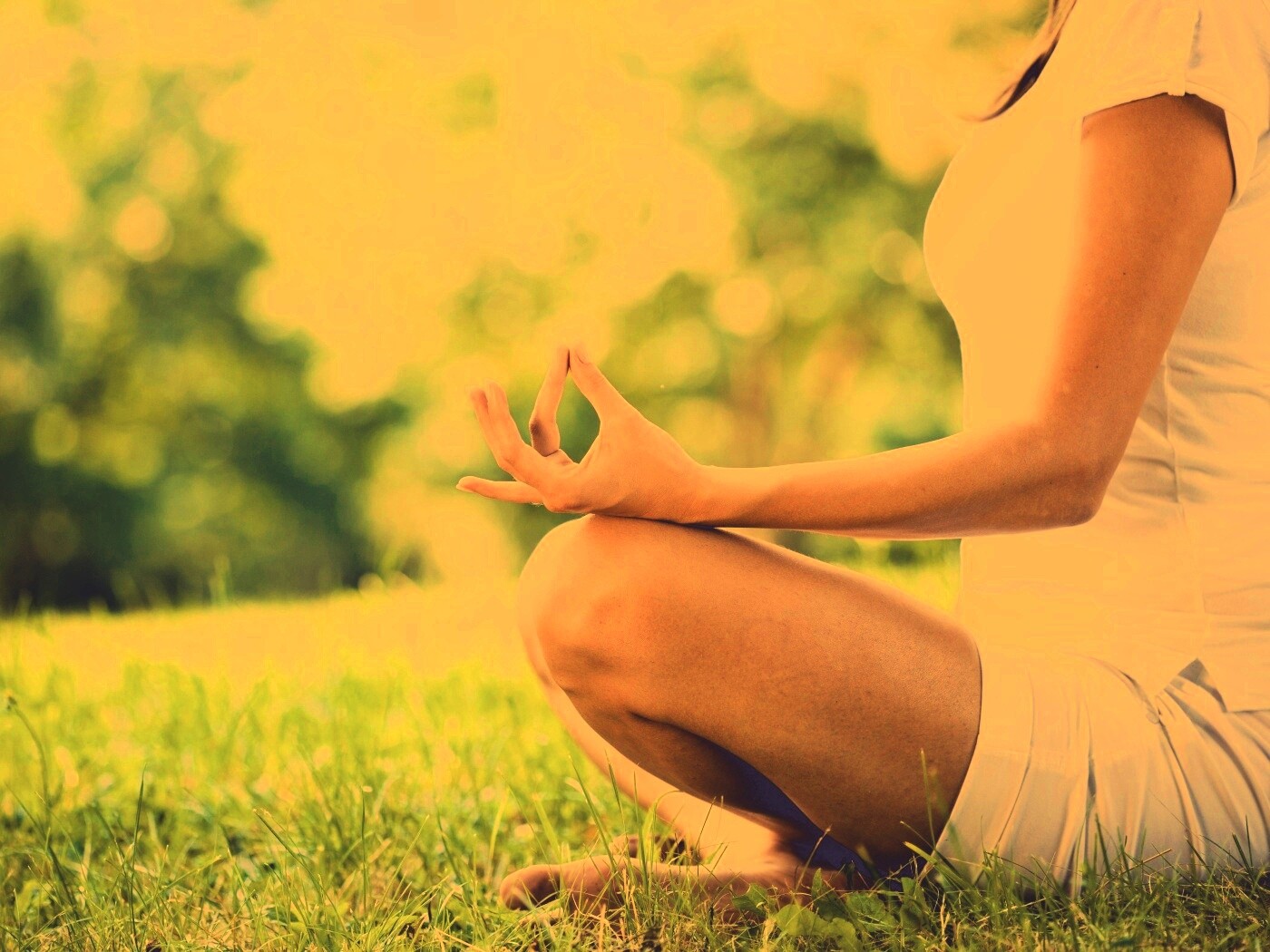 «Девушка медитирует в позе лотоса на траве»