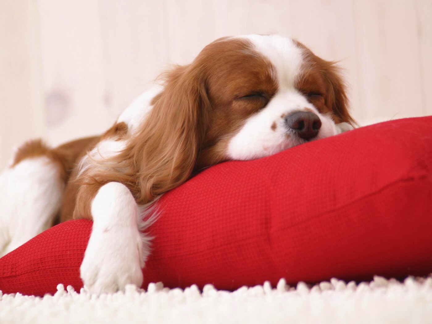 «Спящий щенок на красной подушке»