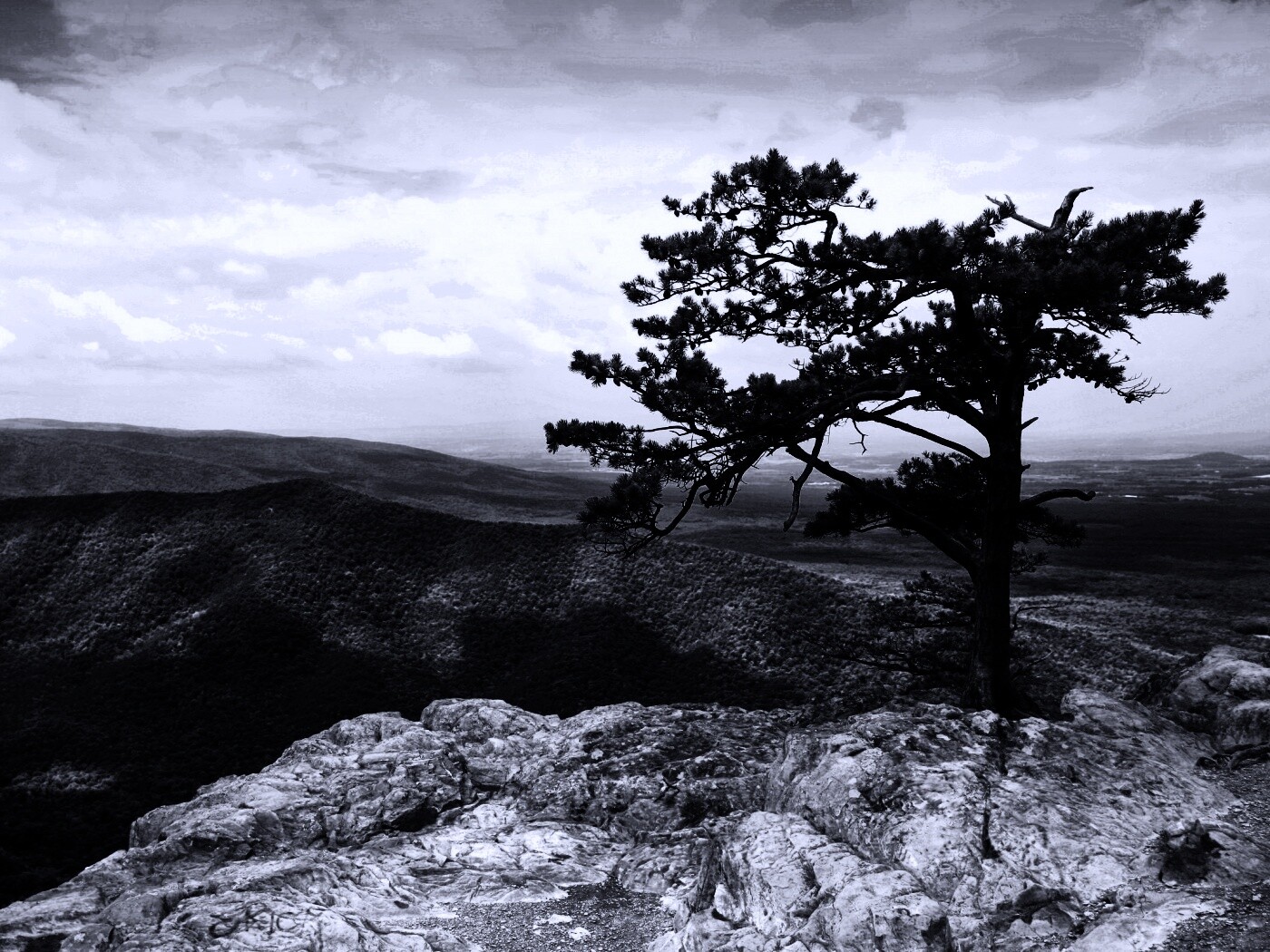 «Горное дерево в черно-белых тонах»