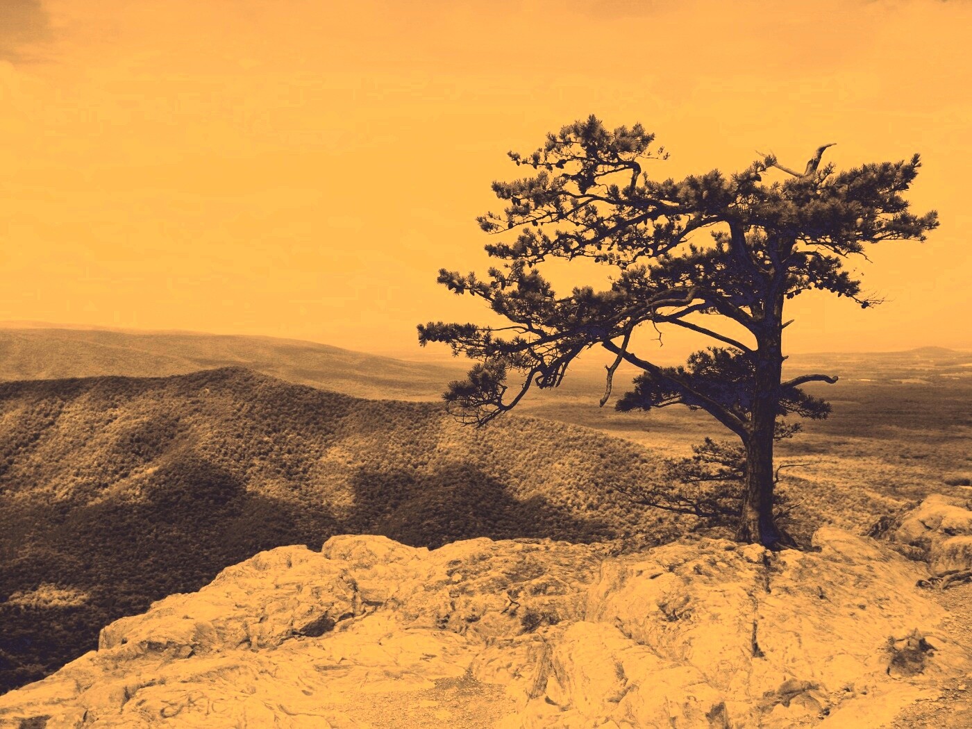 «Горное дерево в черно-белых тонах»
