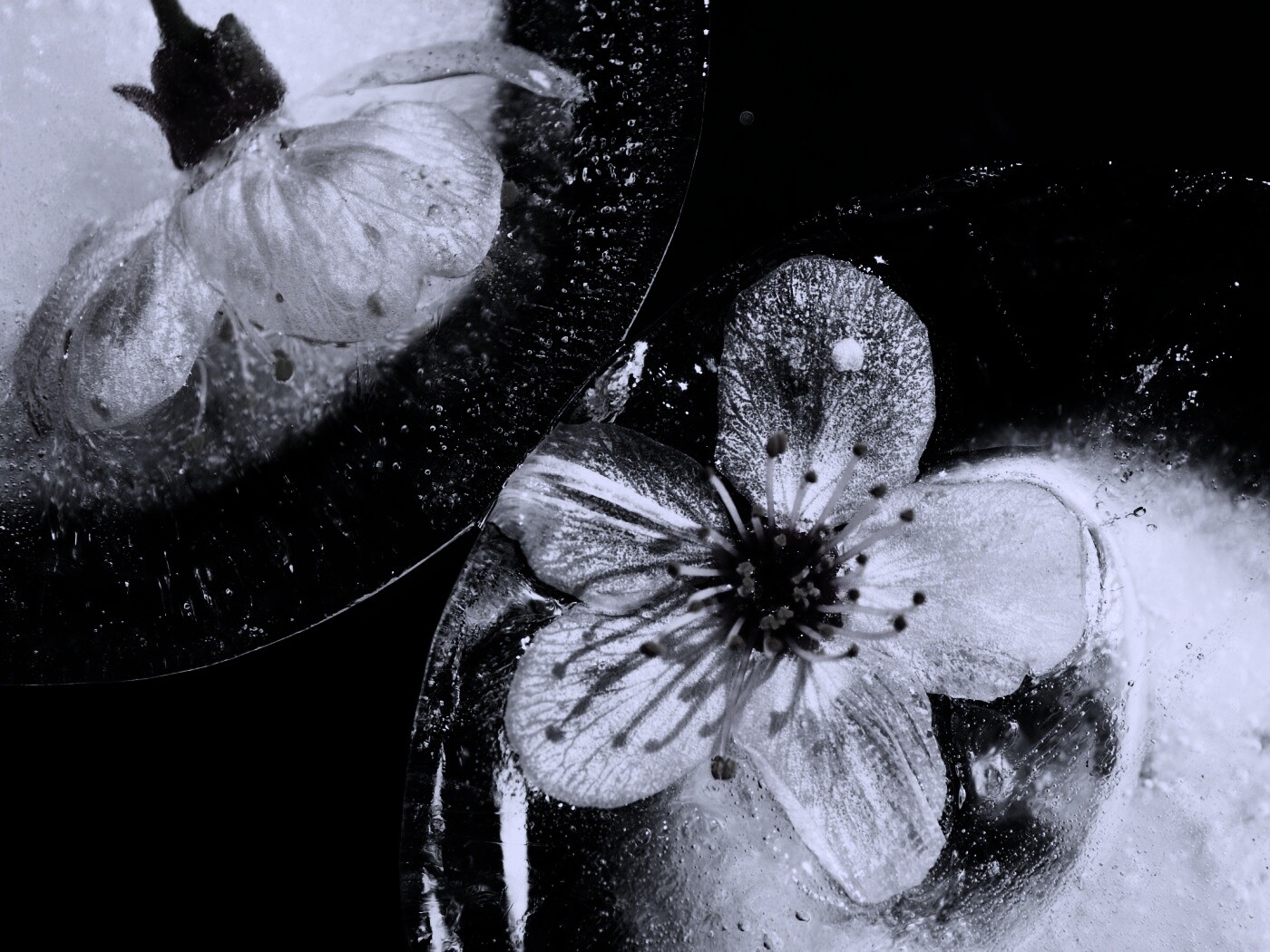 Обои для рабочего стола «Цветы вишни во льду» 1400х1050 с фильтром gotham (оригинал 2560х1600)