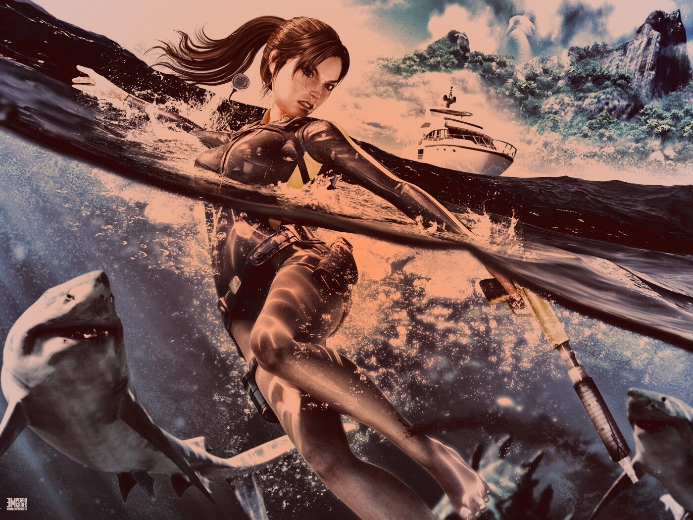 «Лара Крофт против акул»