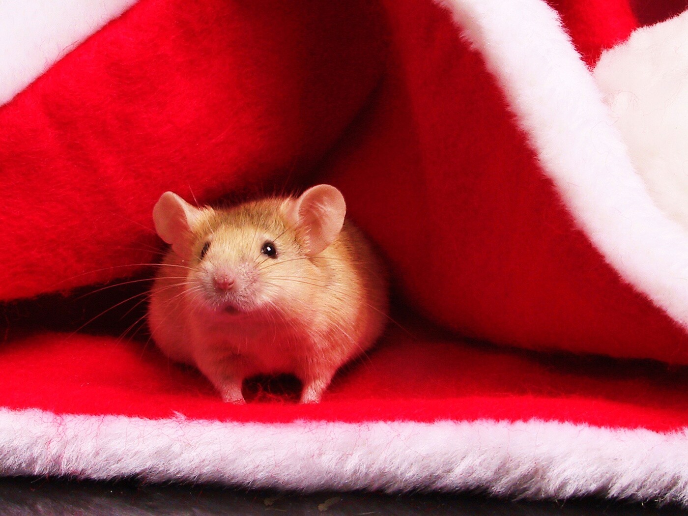 Обои для рабочего стола «Толстый новогодний мышонок» 1400х1050 с фильтром vibrance (оригинал 1920х1200)