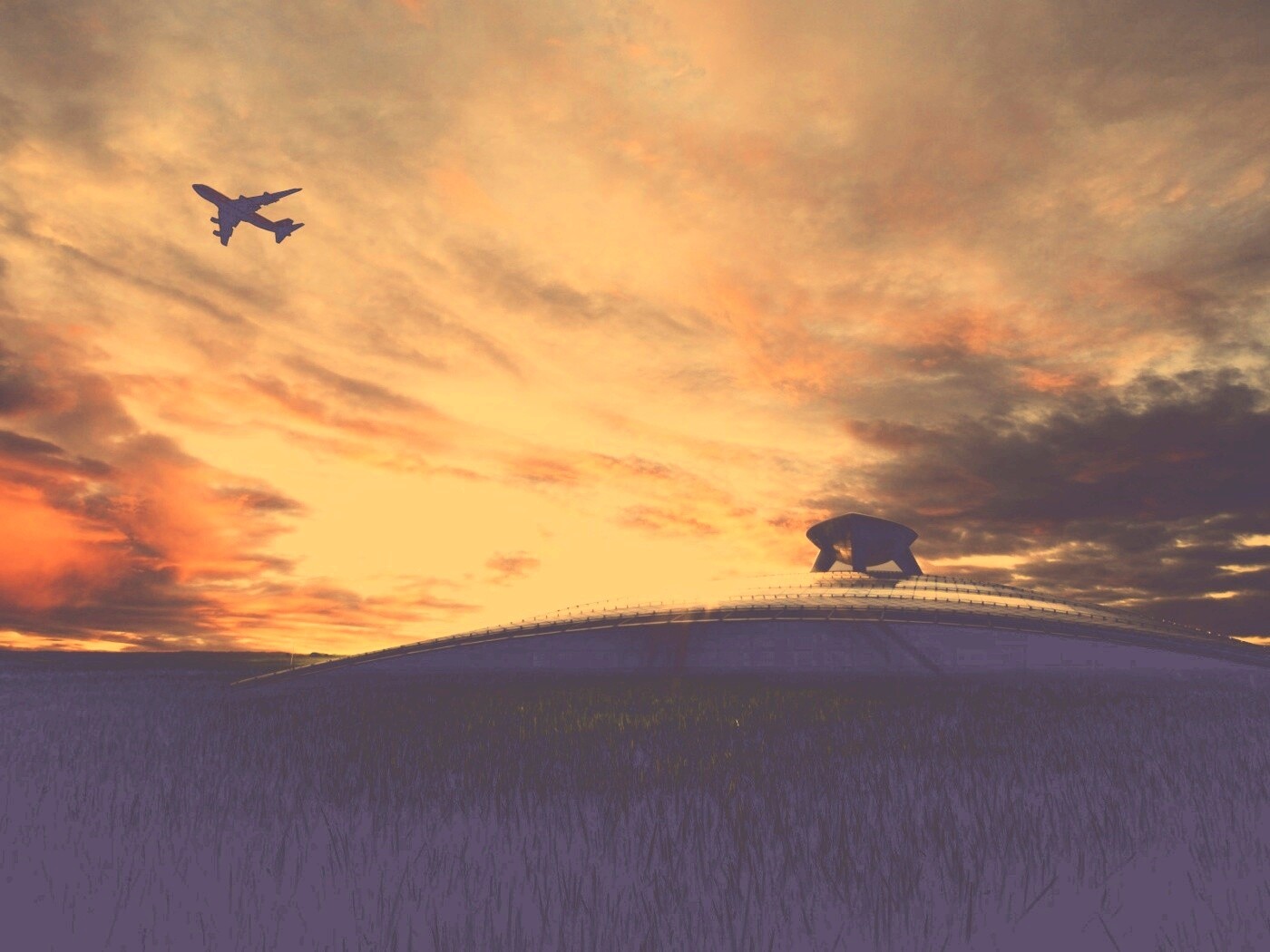 «Самолет в закатном небе»