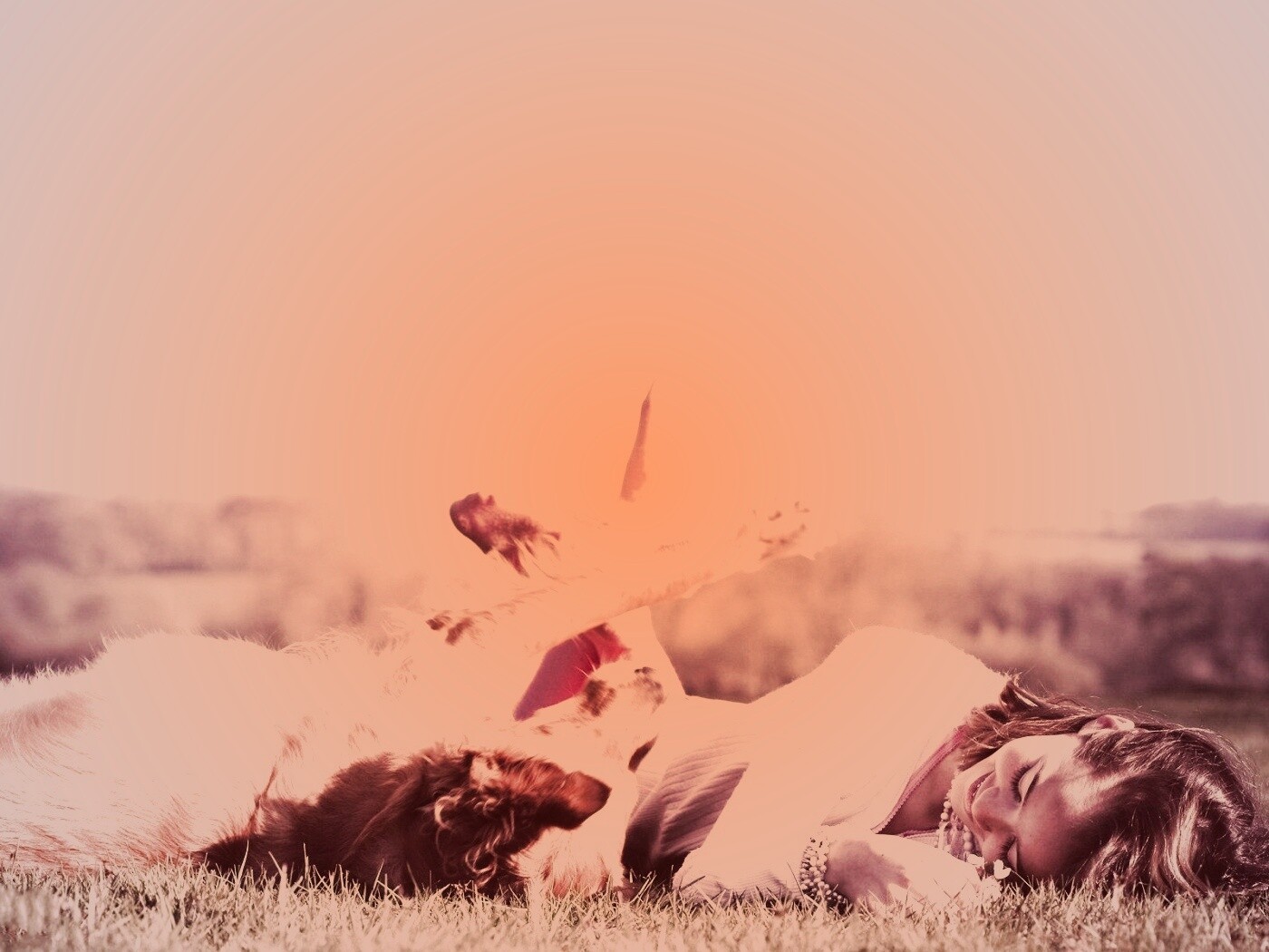 «Девушка и собака валяются на траве»