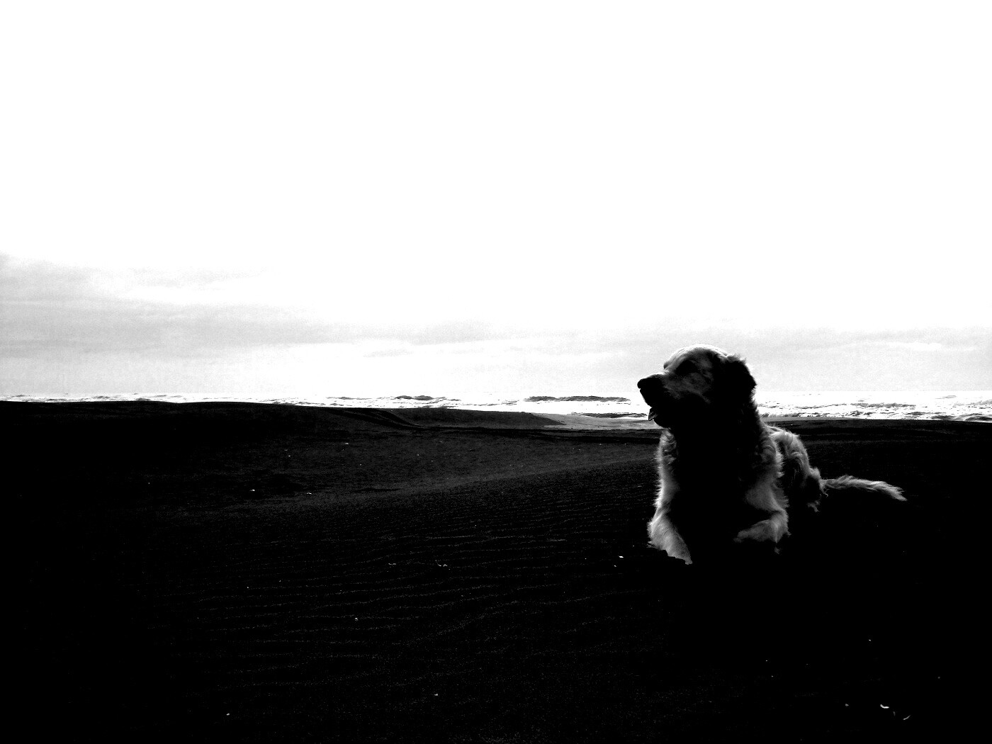 «Красивая собака на оранжевом песке»
