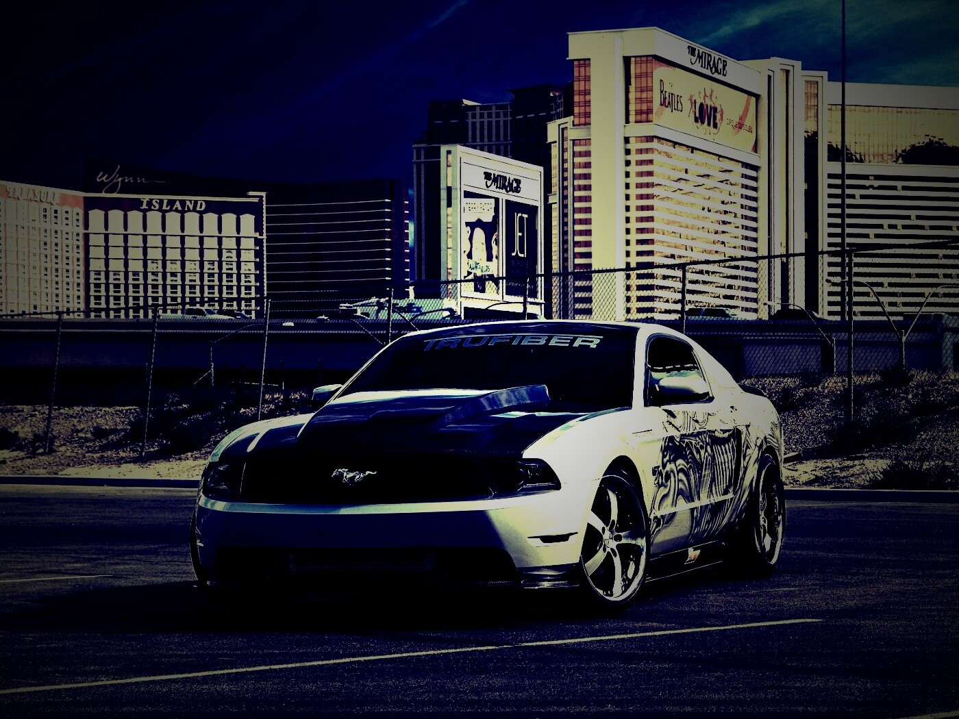 Обои для рабочего стола «Мустанг на парковке» 1400х1050 с фильтром lomo (оригинал 1920х1200)
