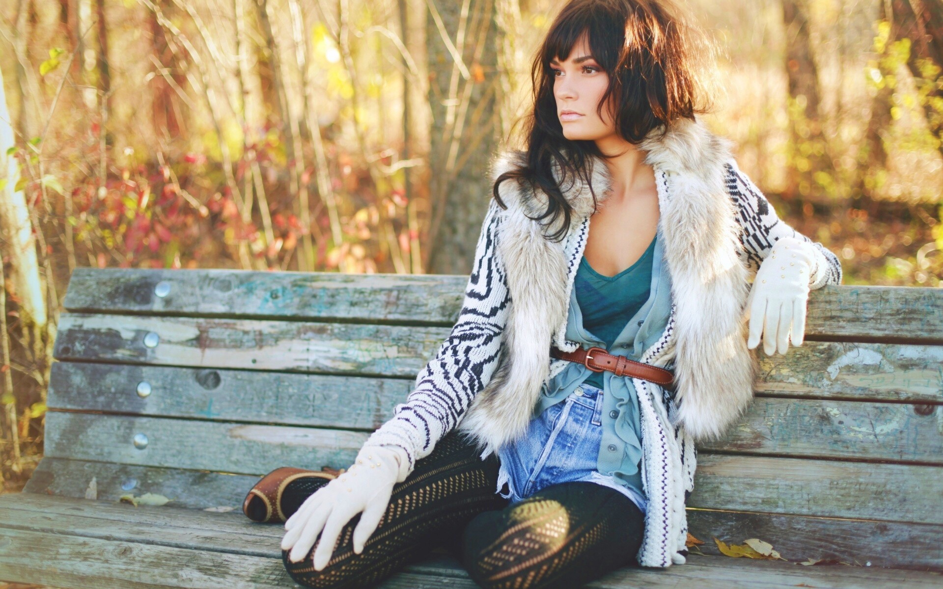 «Красивая девушка сидит на скамейке»
