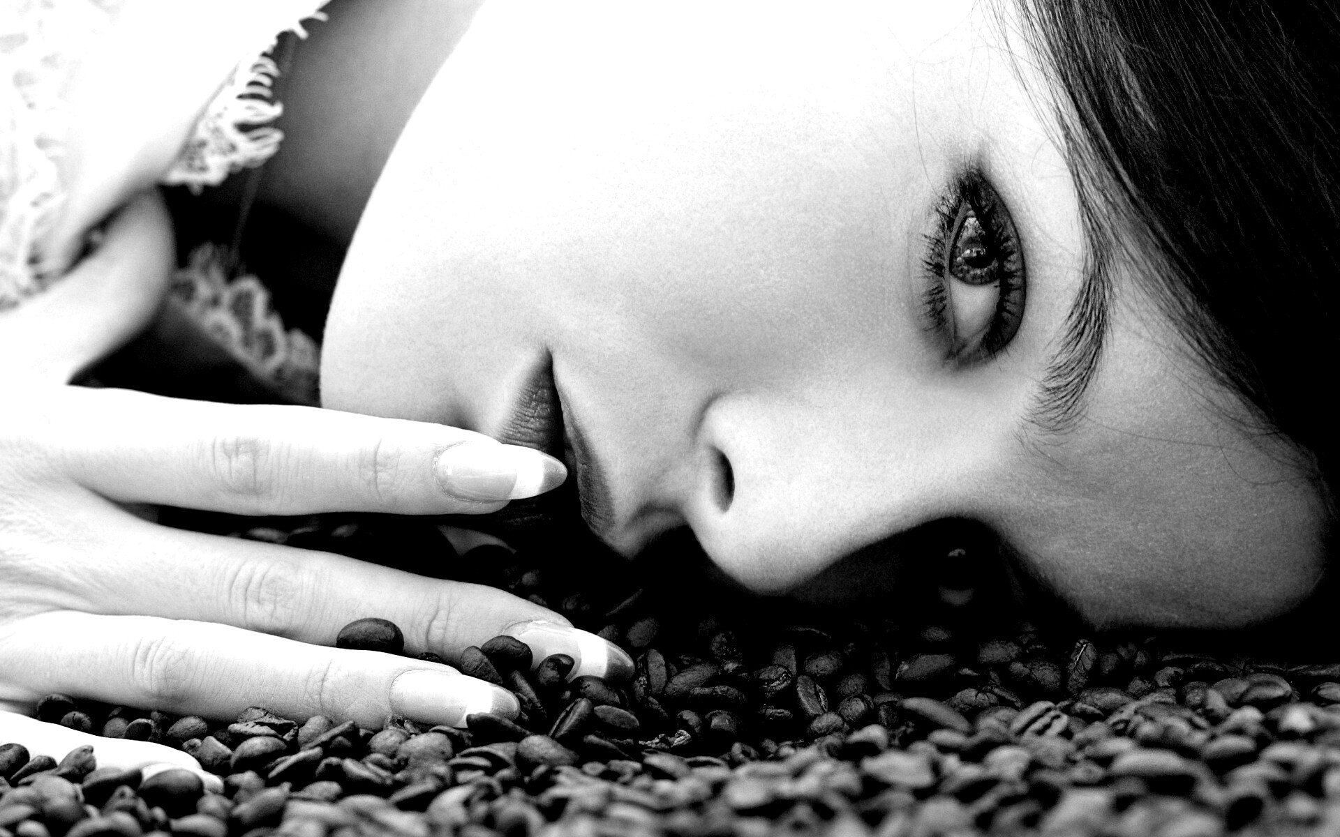 «Соблазнительная девушка с кофейными зернами»