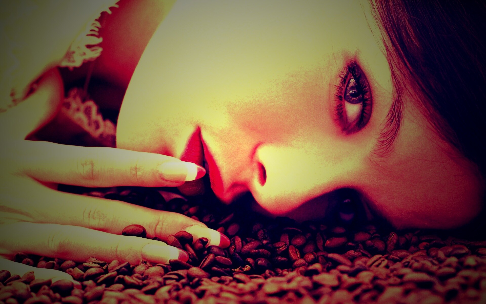 «Соблазнительная девушка с кофейными зернами»