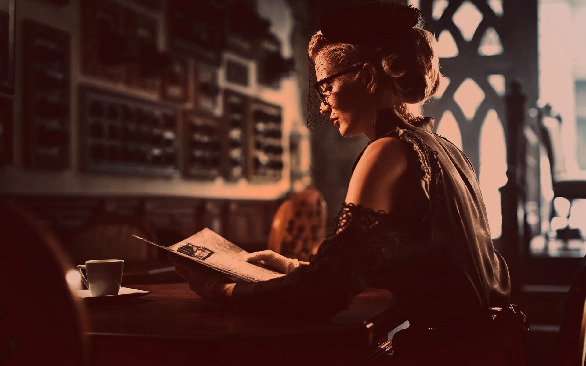«Витажная девушка в кафе»