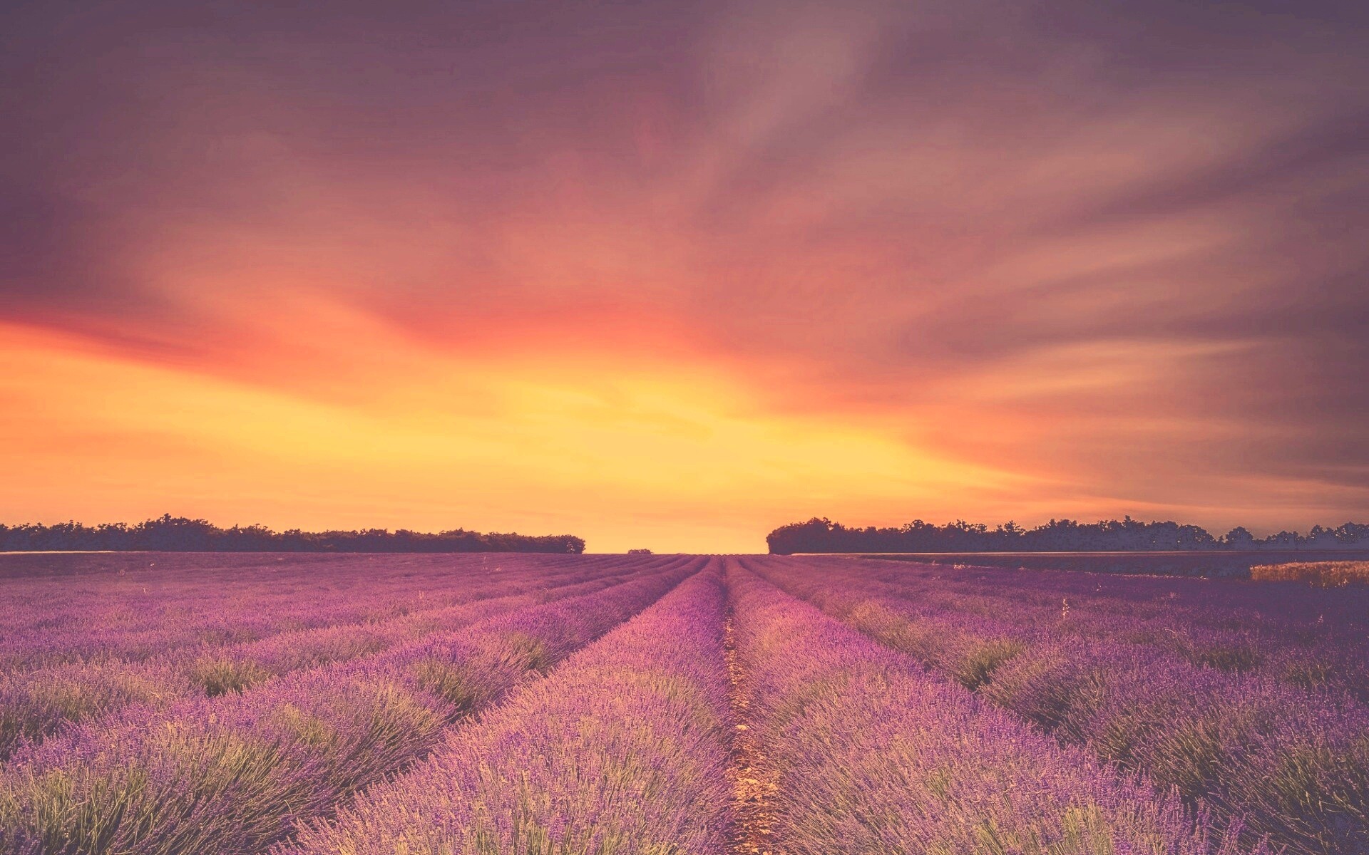 «Поле фиолетовых цветов на закате»