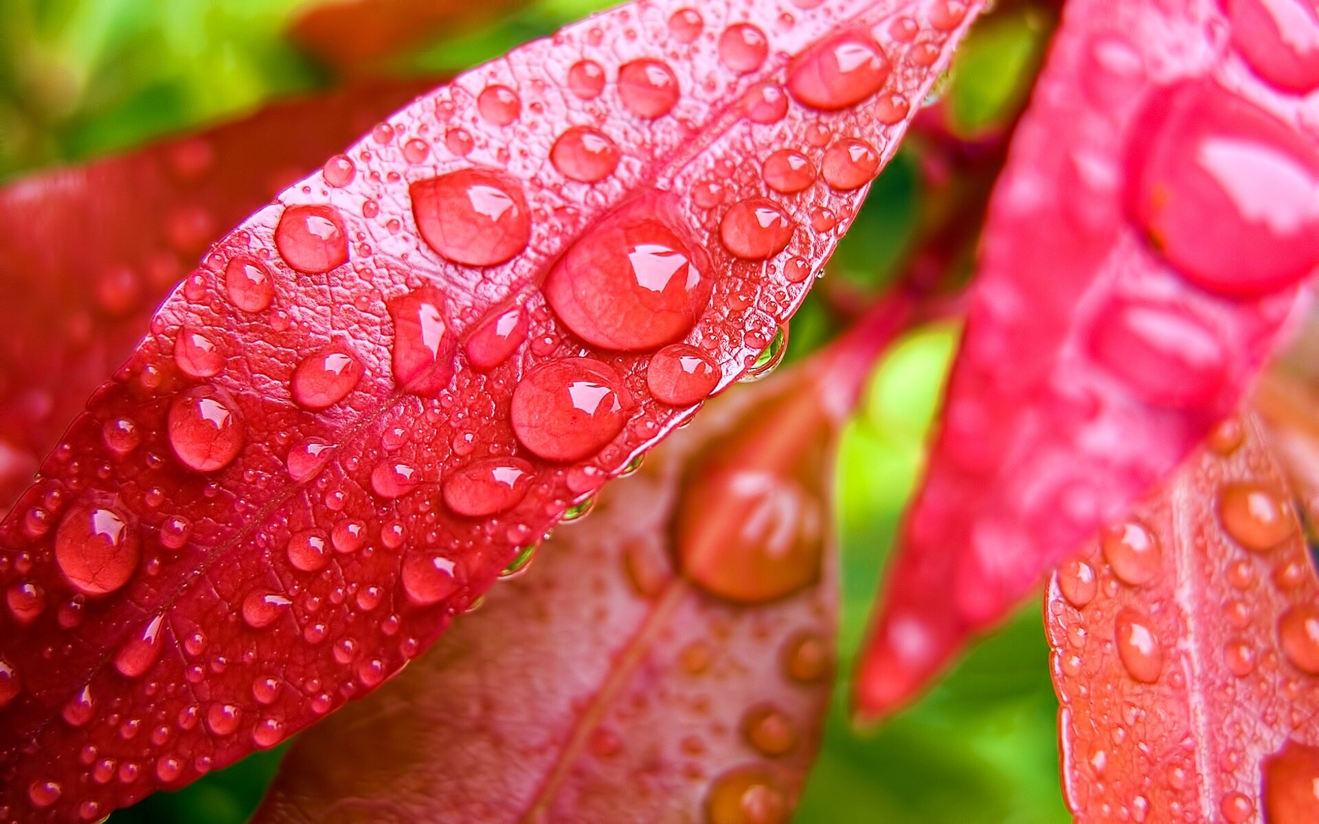 «Капли росы на красных листьях»