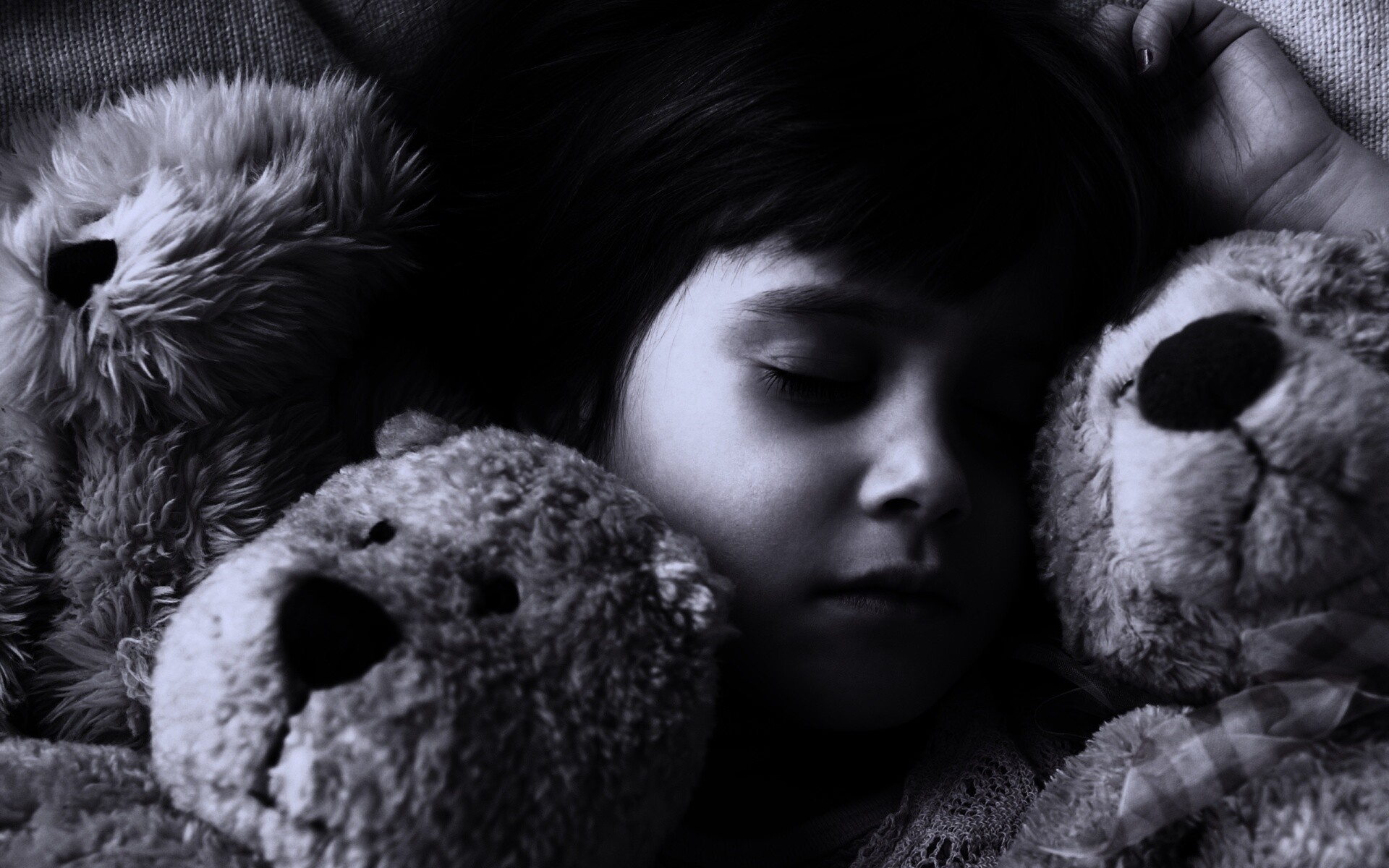 «Девочка спит с мишками в обнимку»