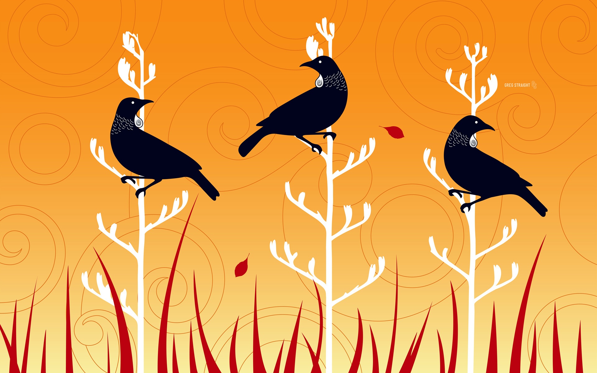 «Векторные стилизованные птицы на ветках дерева»