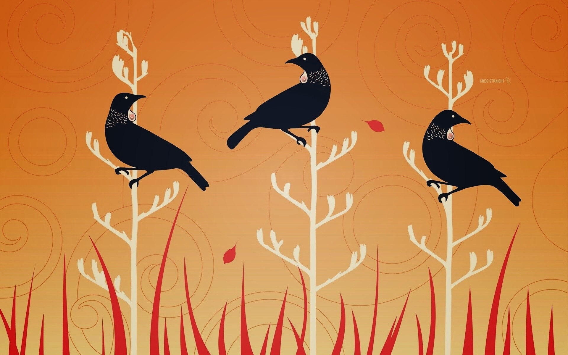 «Векторные стилизованные птицы на ветках дерева»