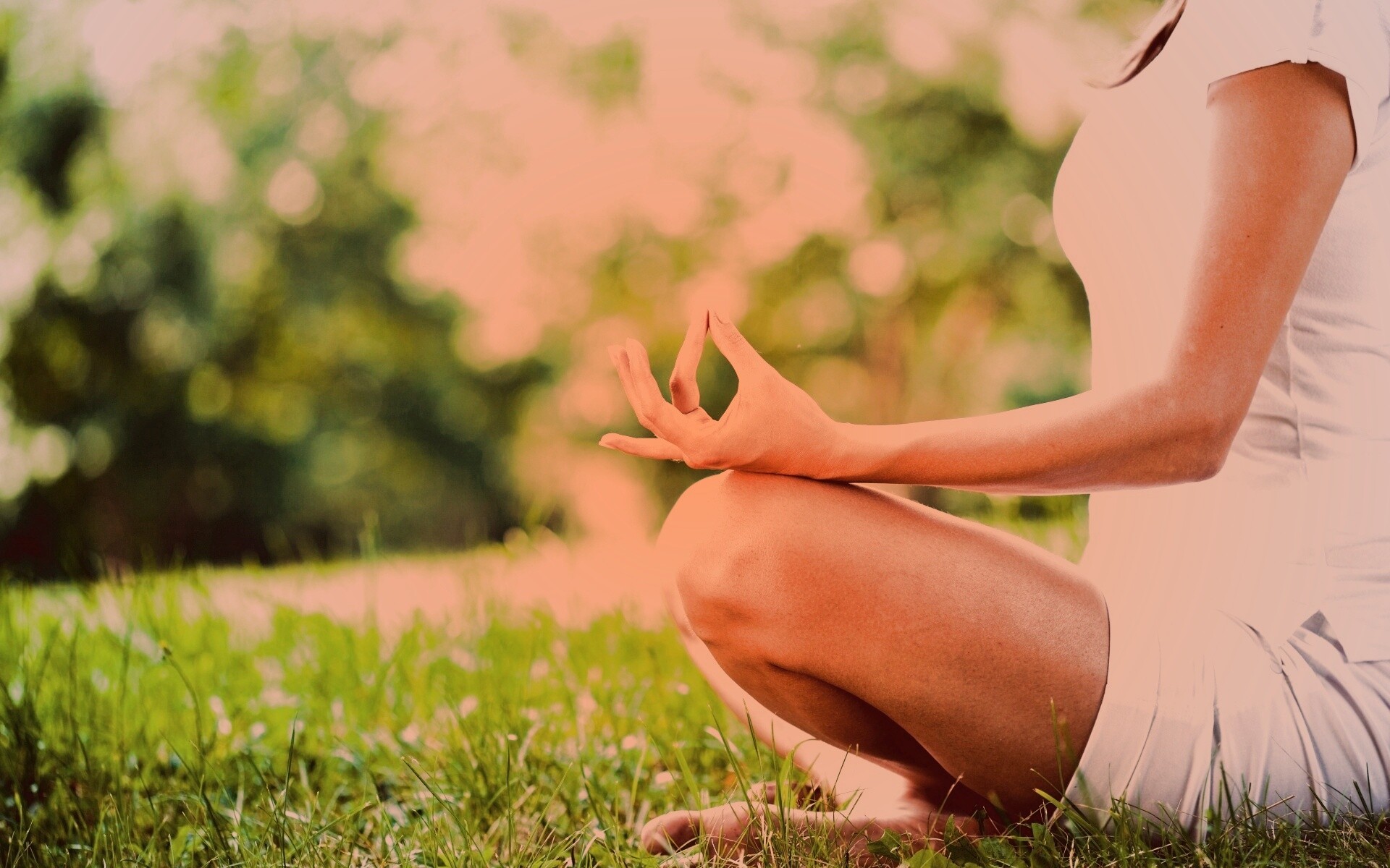 «Девушка медитирует в позе лотоса на траве»