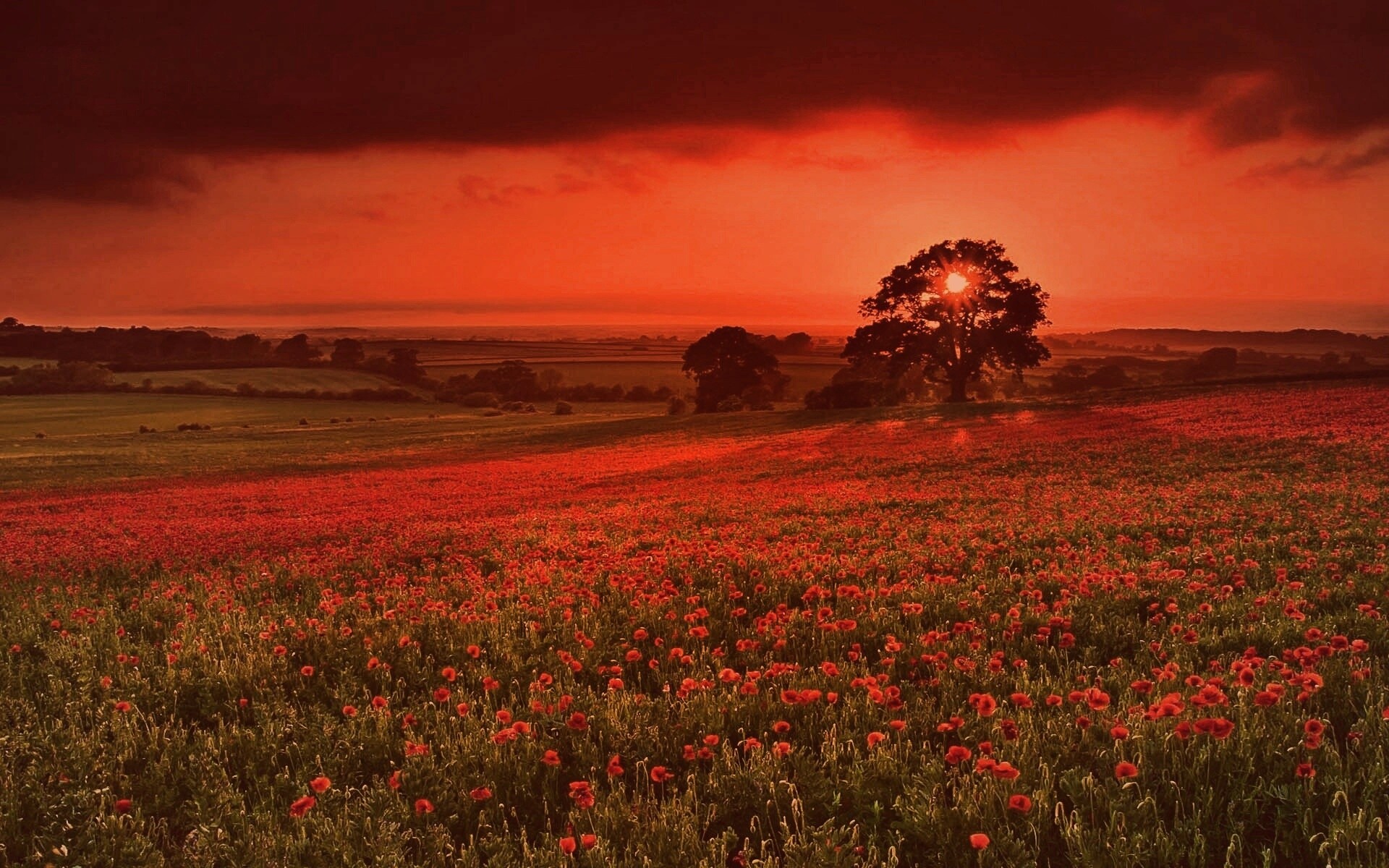 «Закат на поле красных цветов»