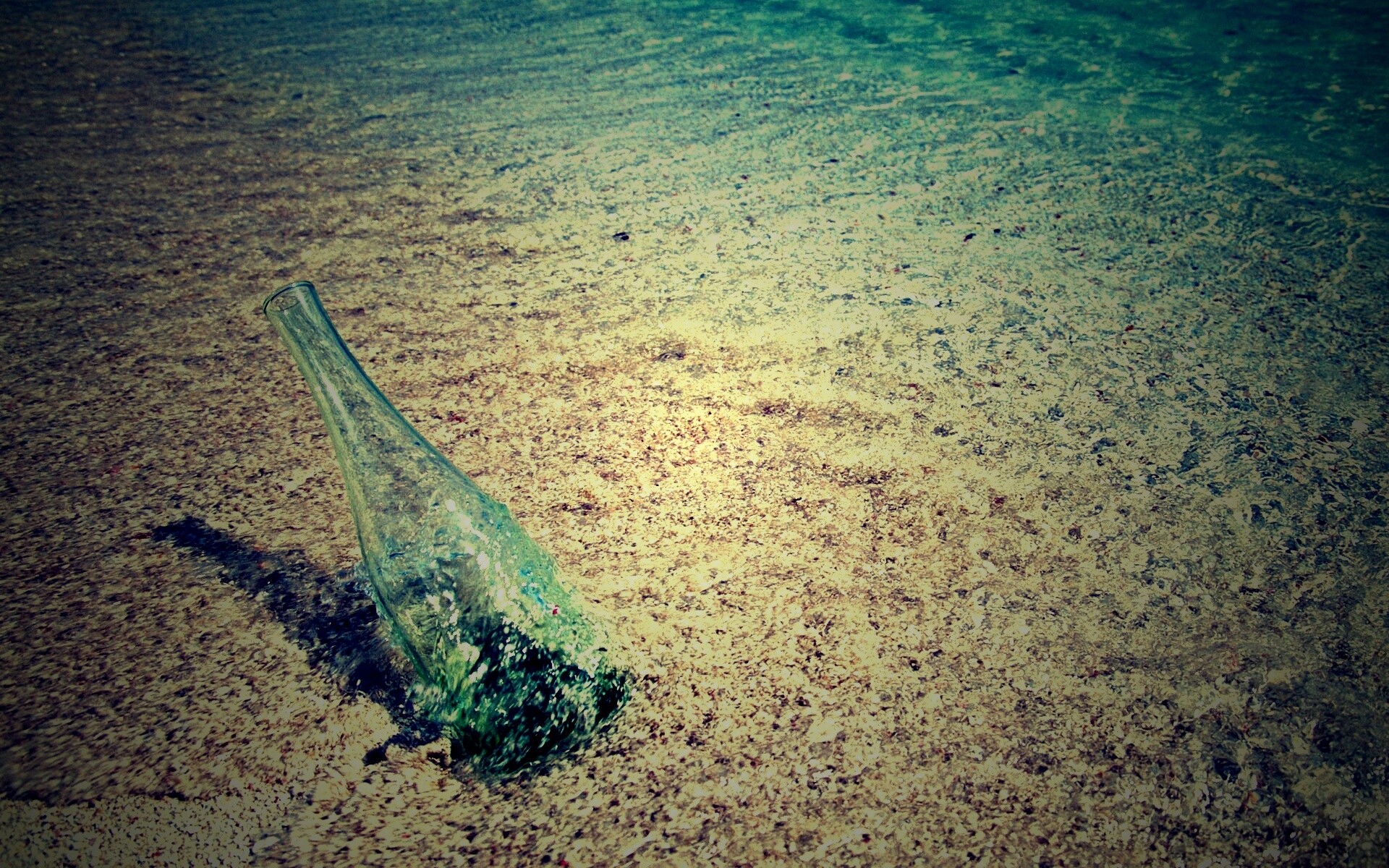 «Бутылка в песке у воды»
