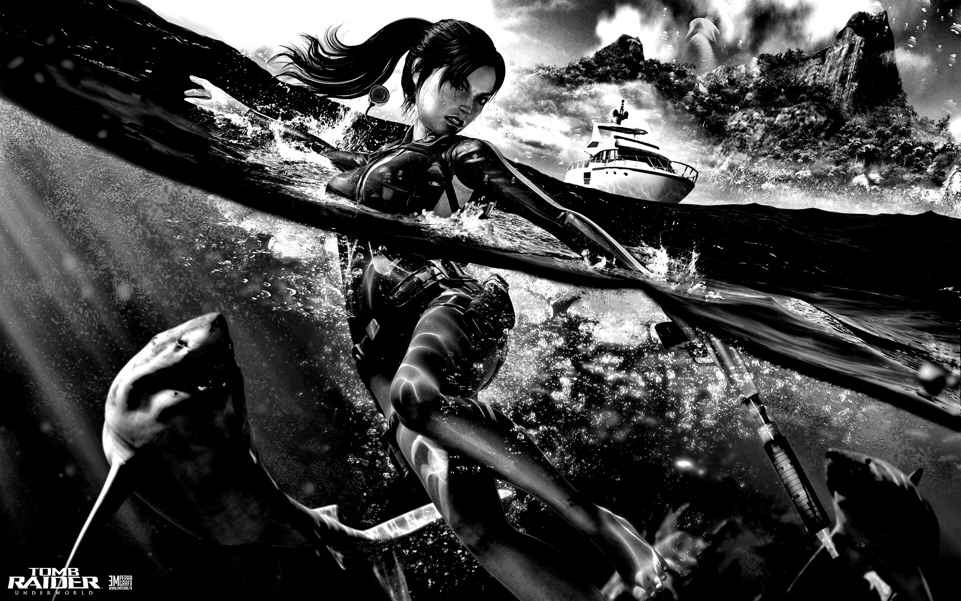«Лара Крофт против акул»