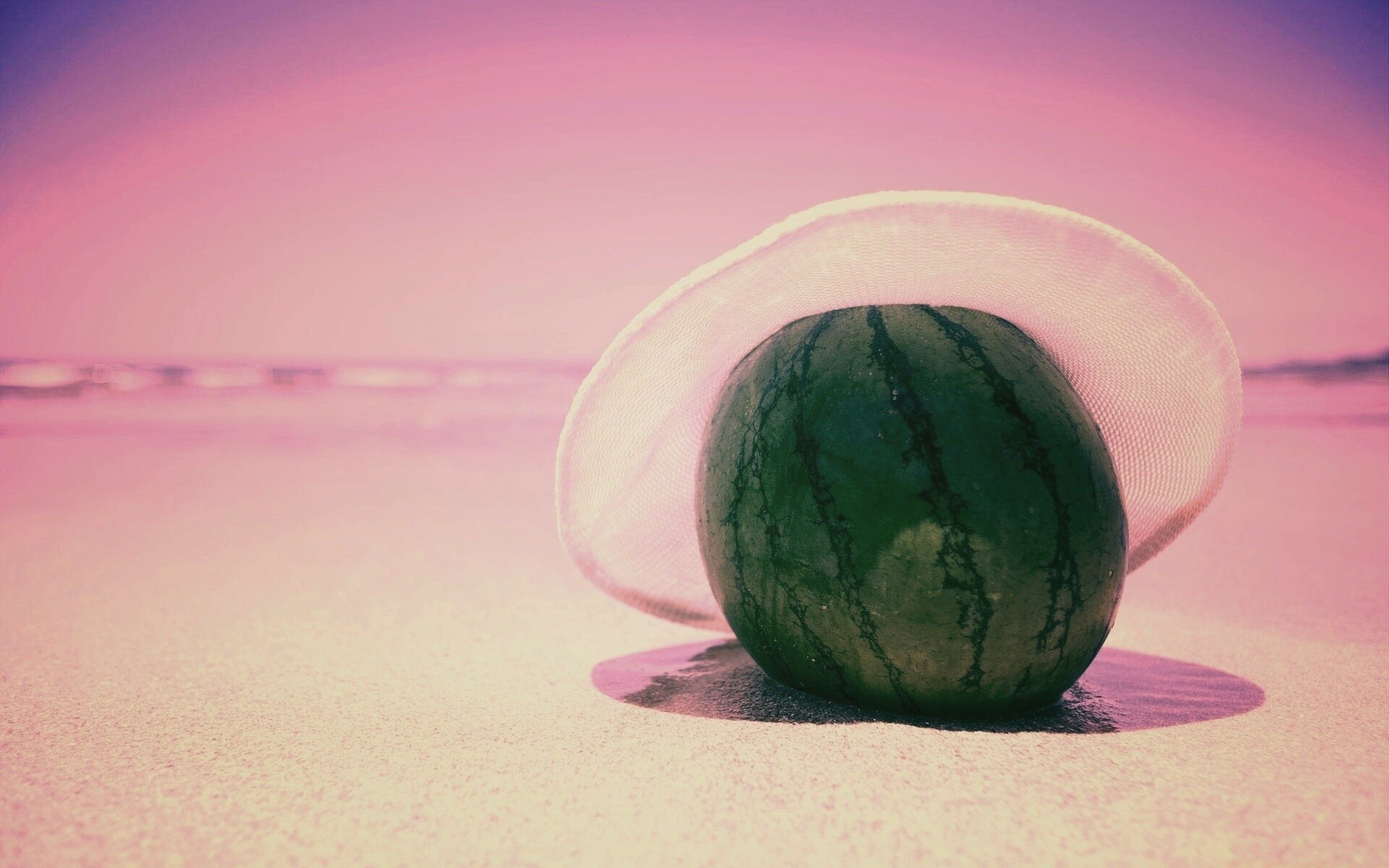 «Арбуз в летней шляпке на пляже»