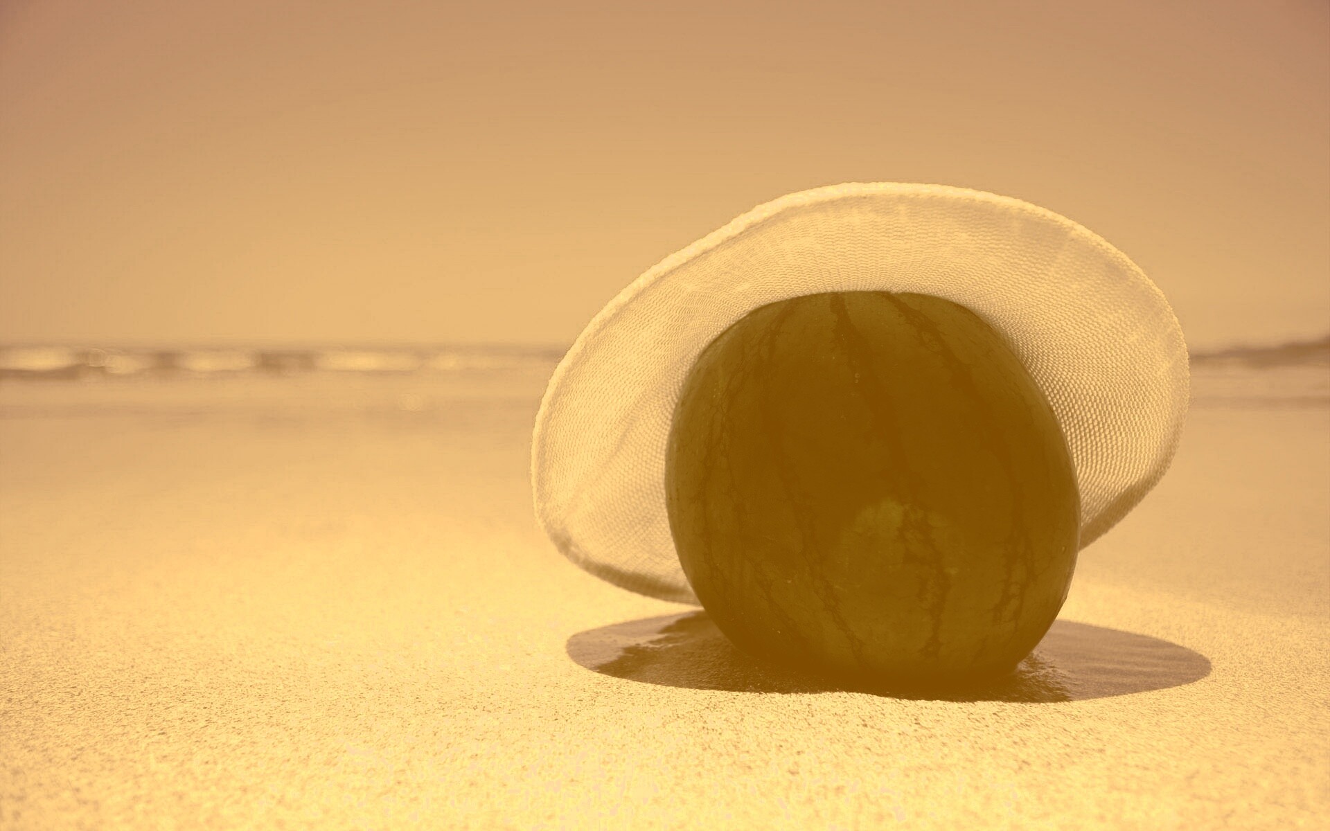 «Арбуз в летней шляпке на пляже»