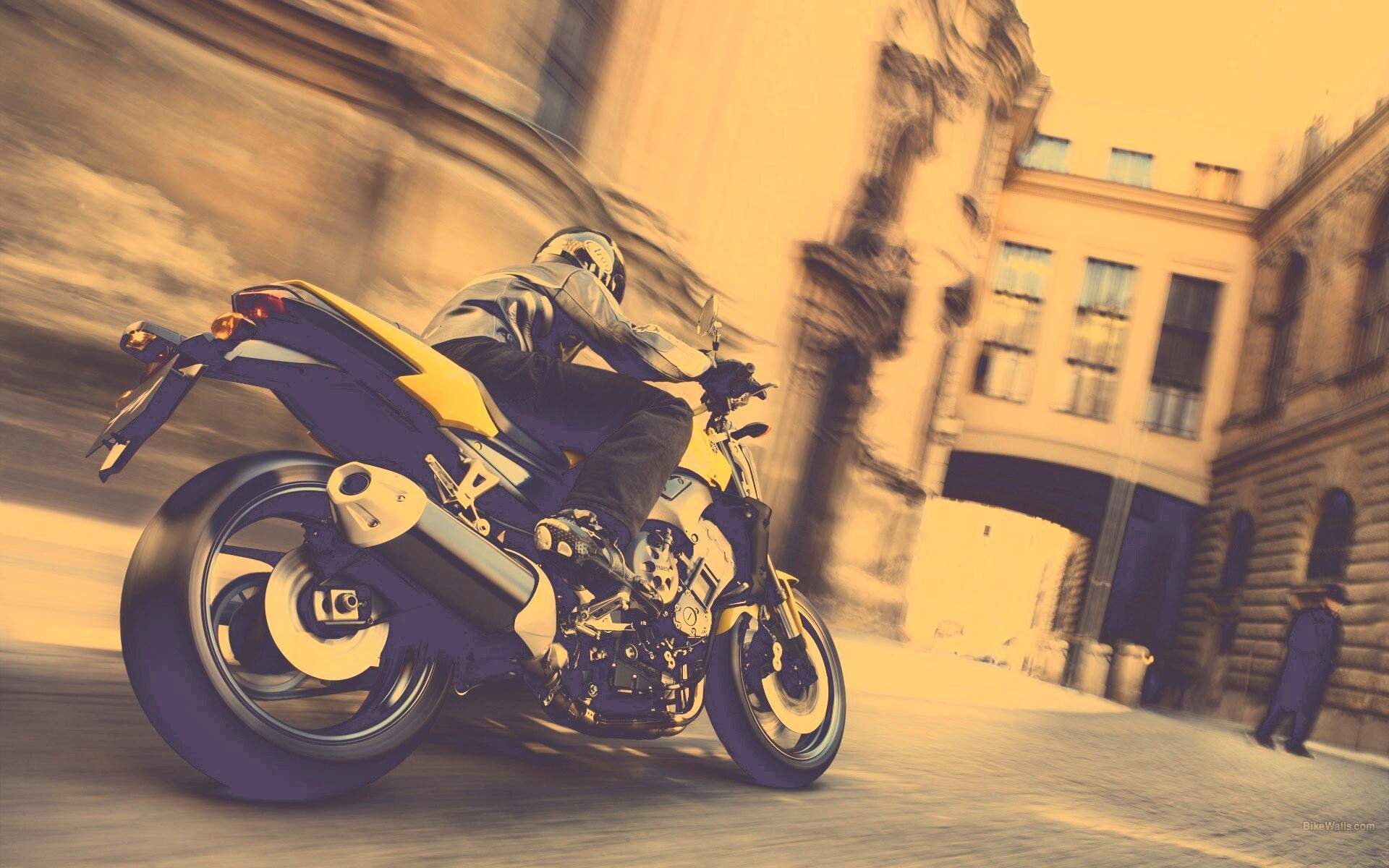 «Ямаха и наездник на улицах города»