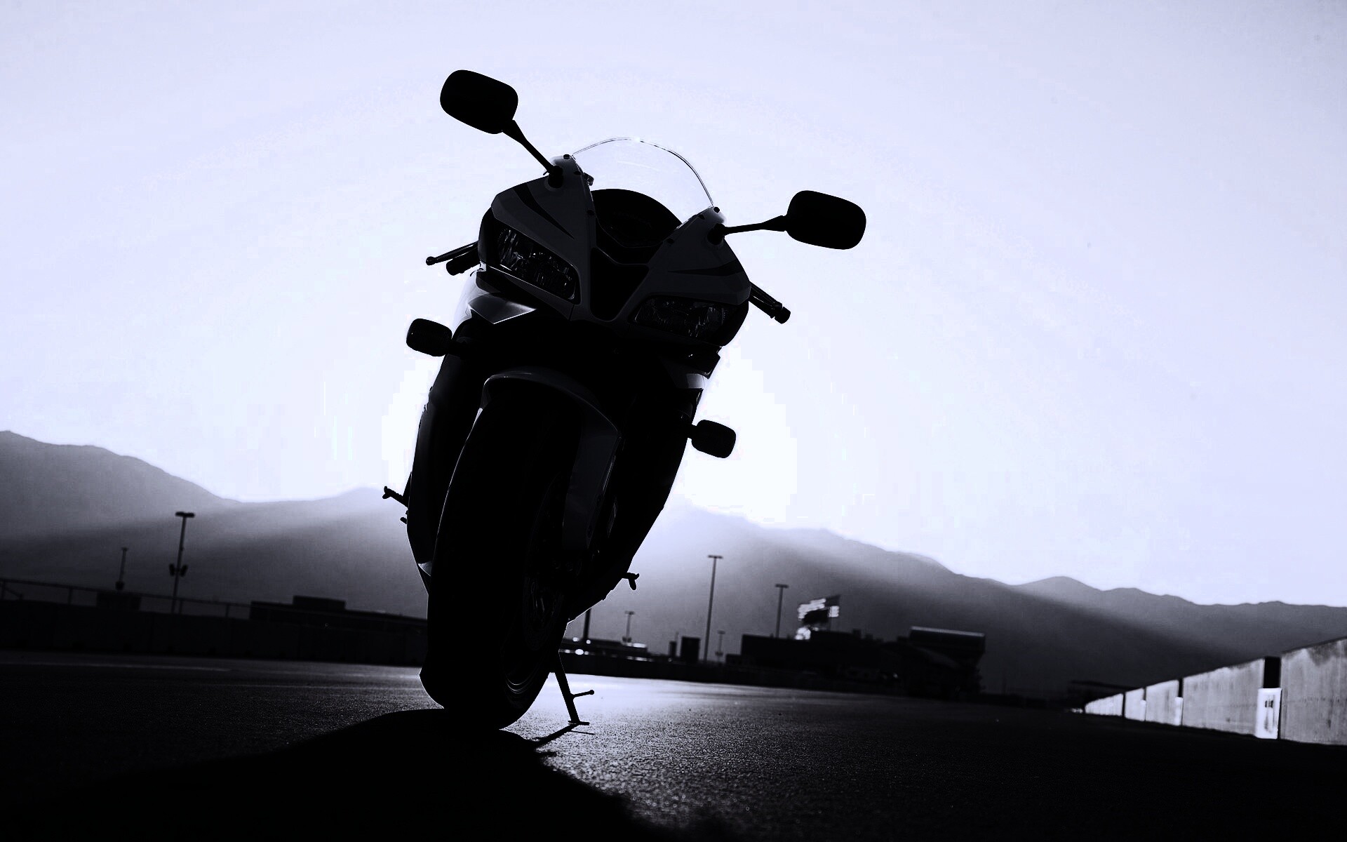 «Мотоцикл на фоне заходящего солнца»